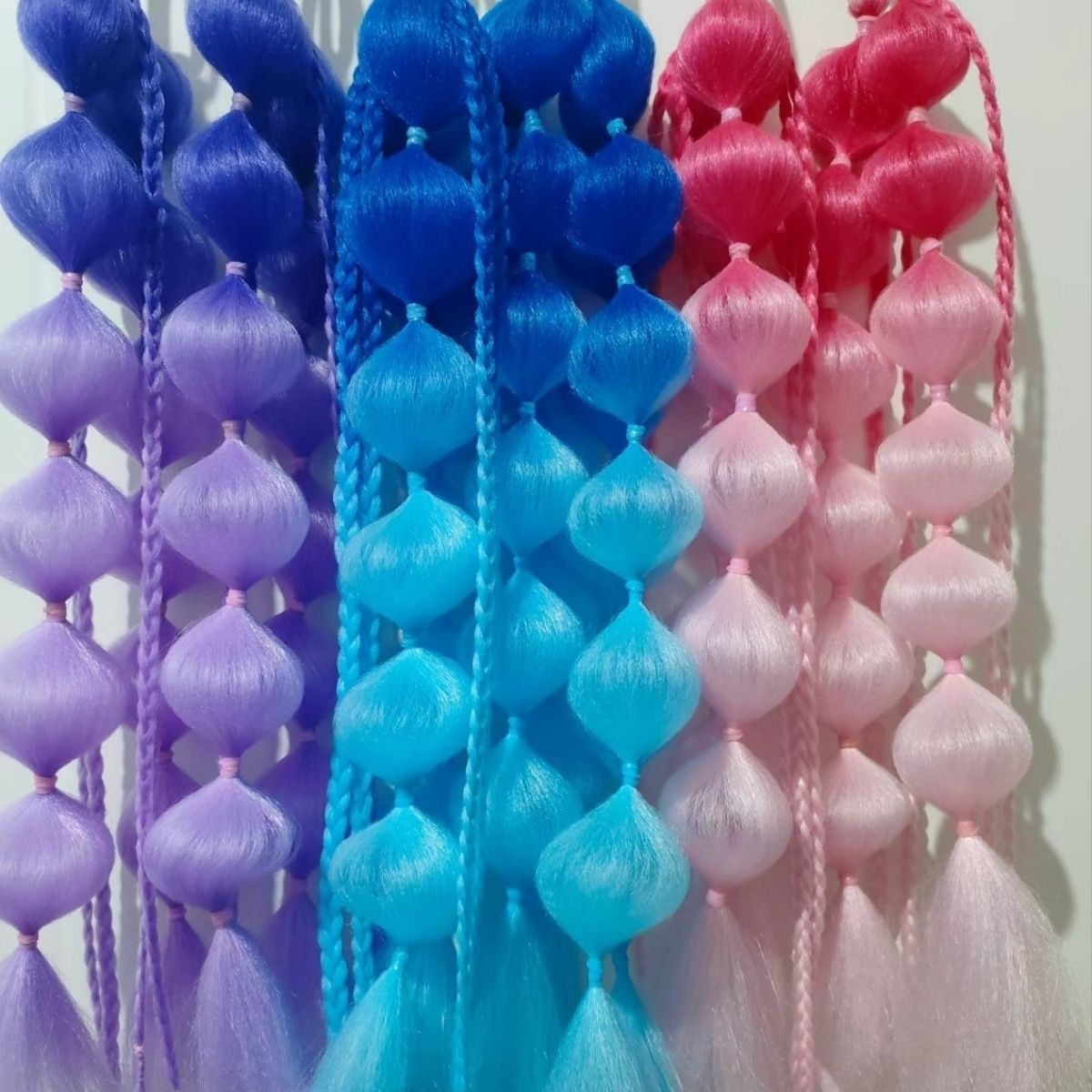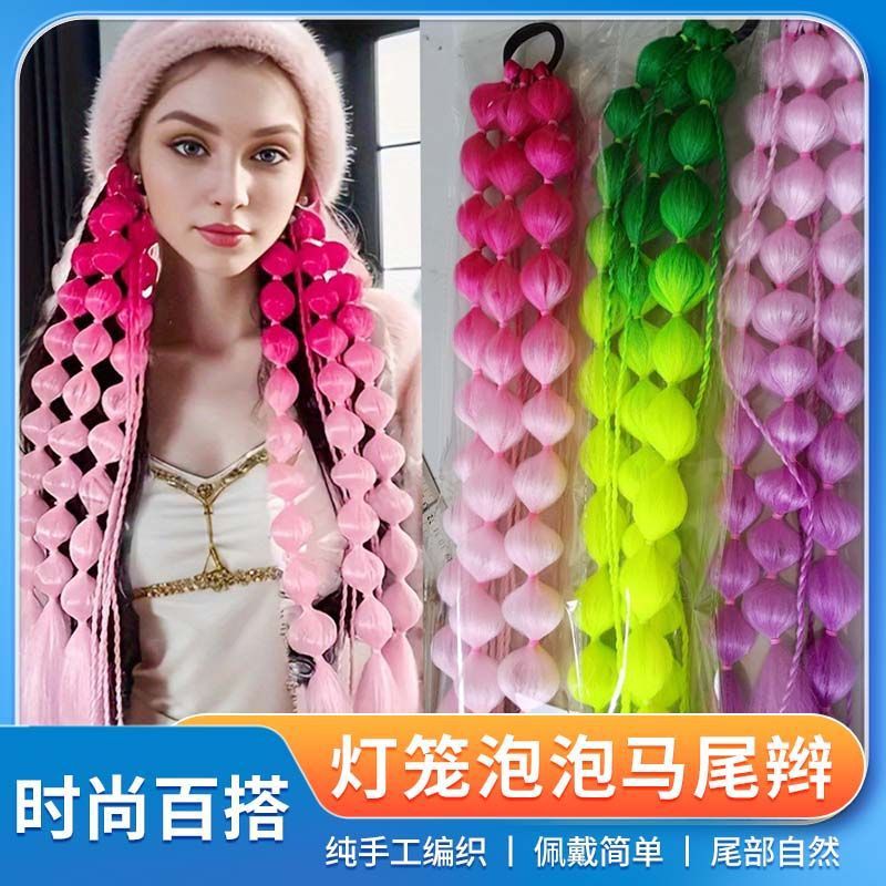 Colorful Bubble Braids Gradient Wig Ponytail Colorful Birthday Party Lantern Colorfulful Hand-Woven Highlighted Braids