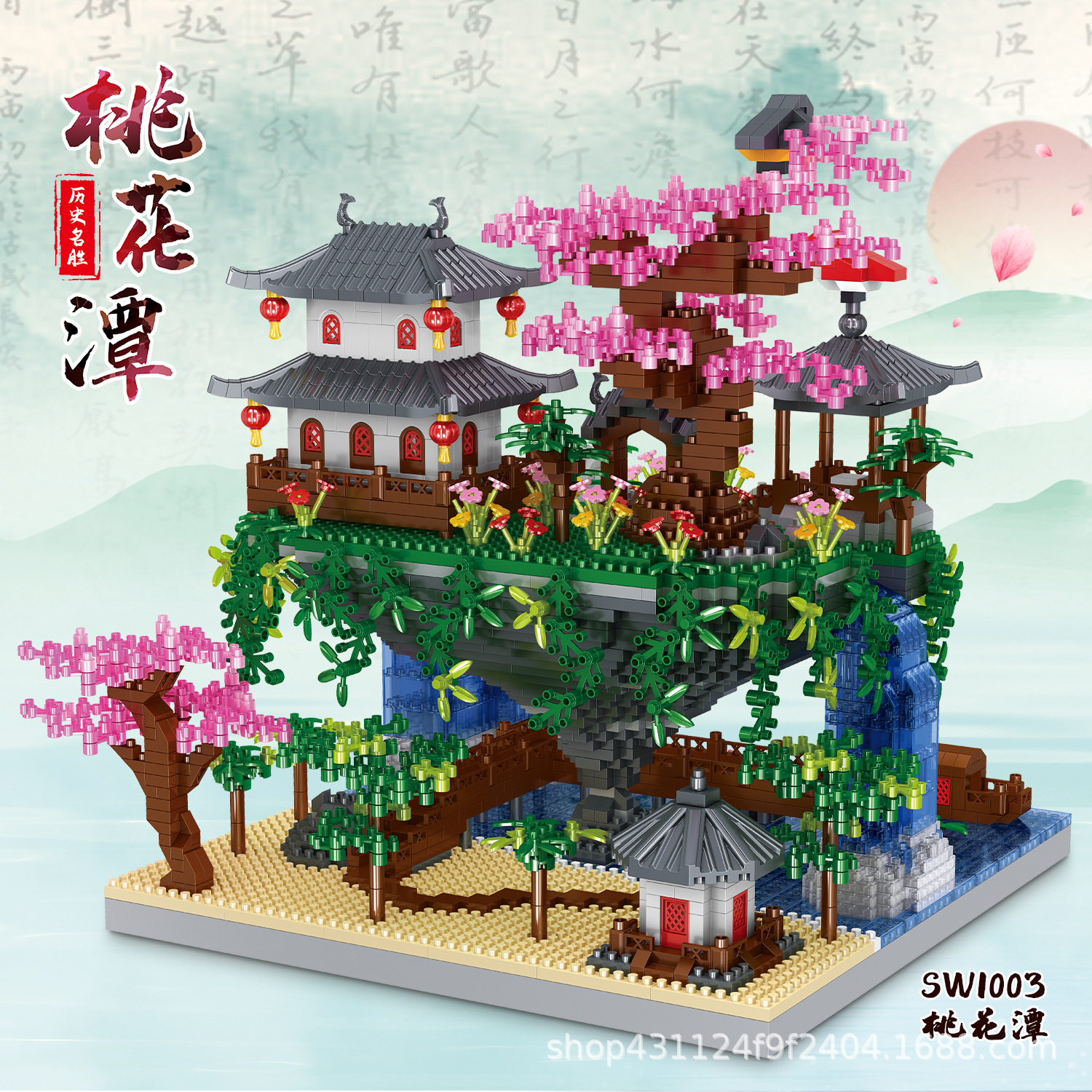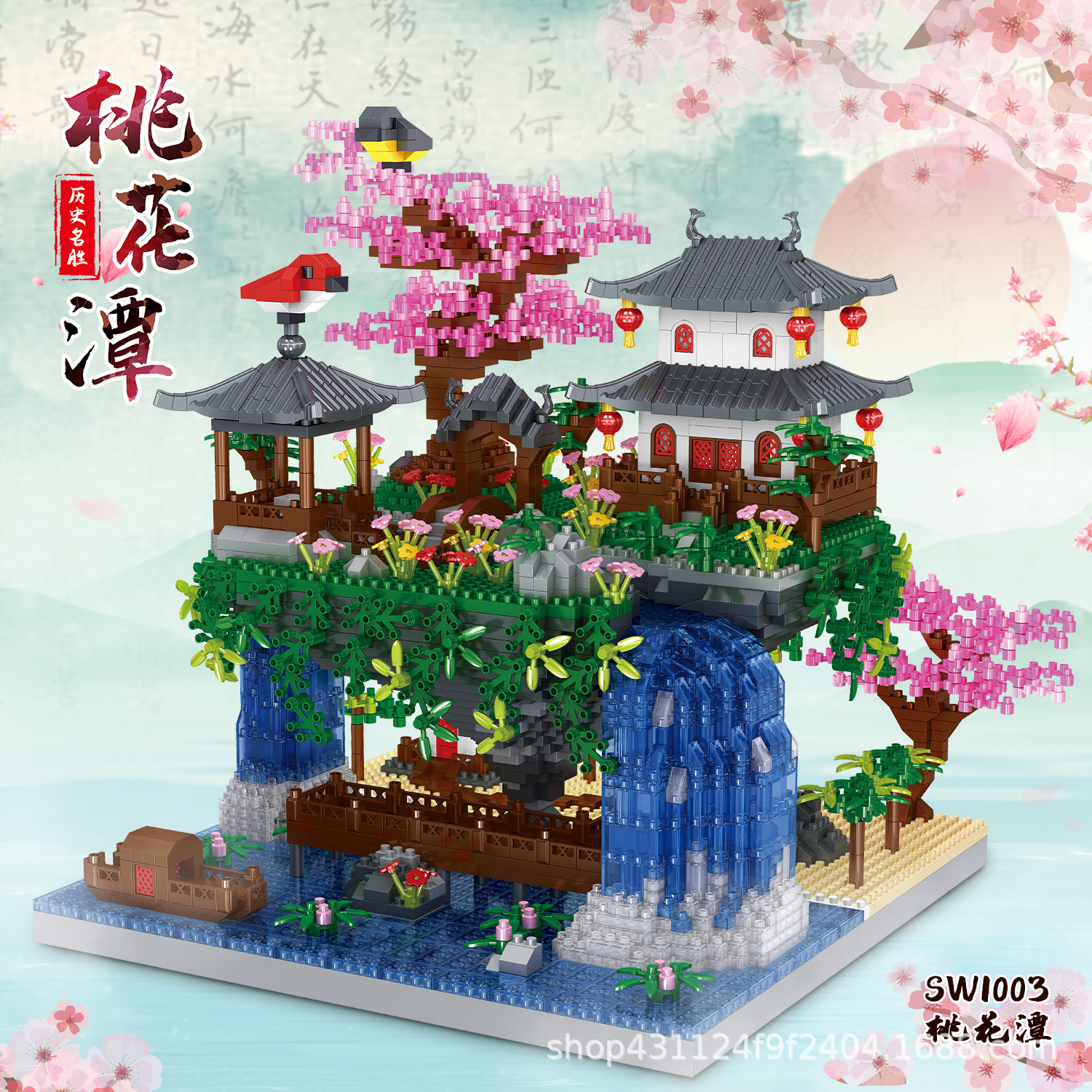 Compatible with Lego Street View Series Assembled Toys Peach Blossom Pool Building Blocks Difficult Building Model Girl's Gift Cross-border