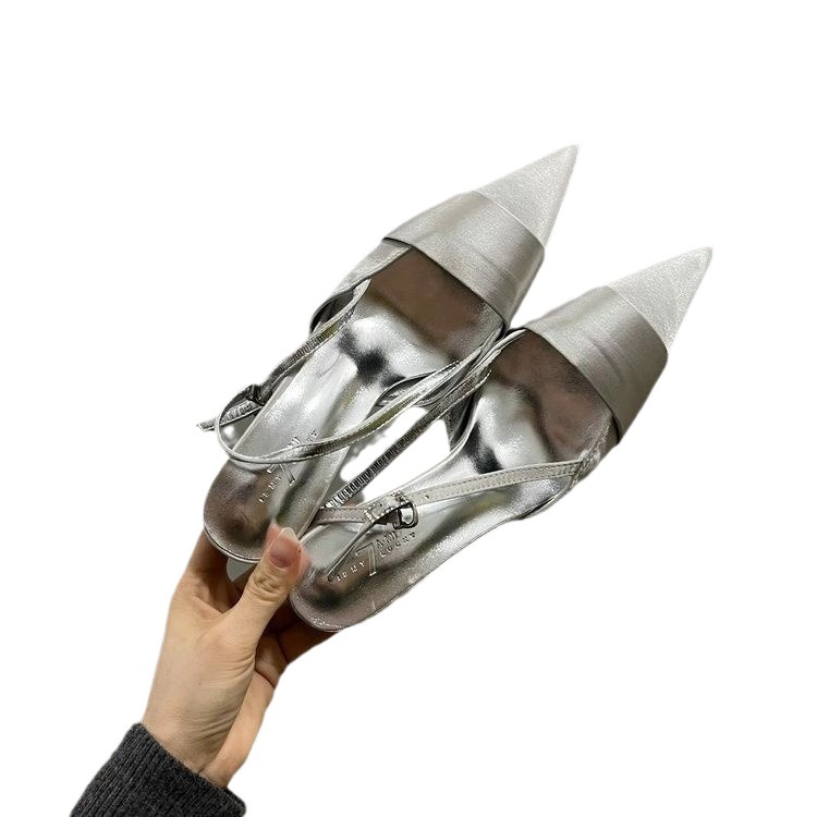 Cool high sense! Pointed silver Satin Sandals Women's Pointed Tall Heel High Heels Women's Fashion Single-layer Shoes