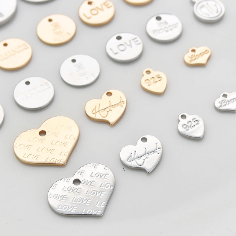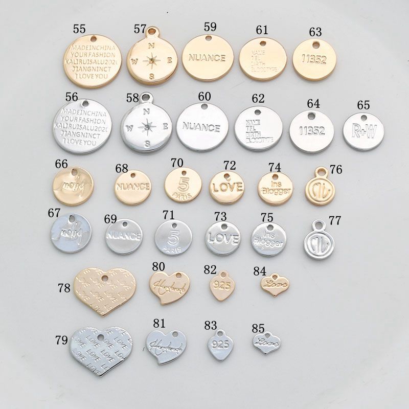 Copper plated real gold color preserving round love letter pendant diy personality hand made earrings hair accessories material accessories