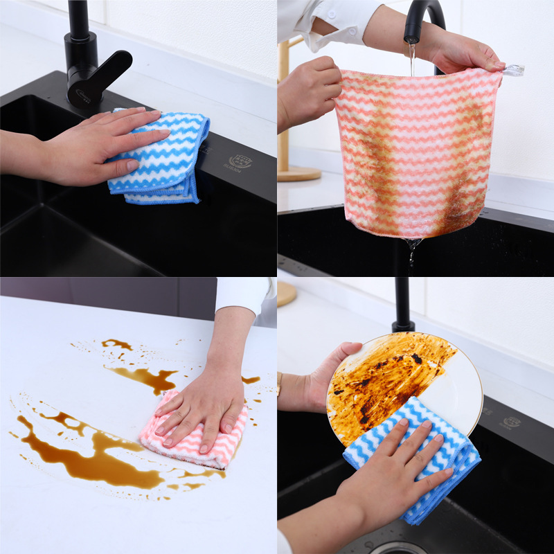 Coral Velvet Striped Cleaning Cloth Absorbs Water and Does Not Shed Lint, Suitable for Kitchen Household Cleaning, Dishwashing Towel, Scouring Pad Wholesale, Easy to Clean