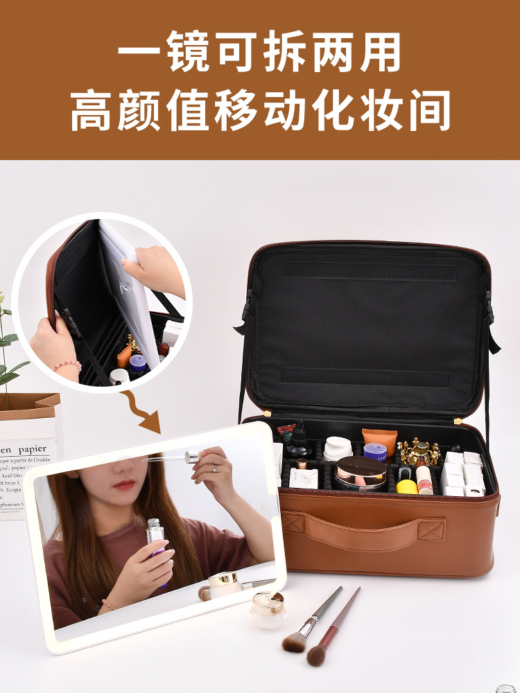 Cosmetic Bag Women's Portable Large Capacity 2024 New Classy Led Light with Mirror Cross-Border Tattoo Travel Cosmetic Box