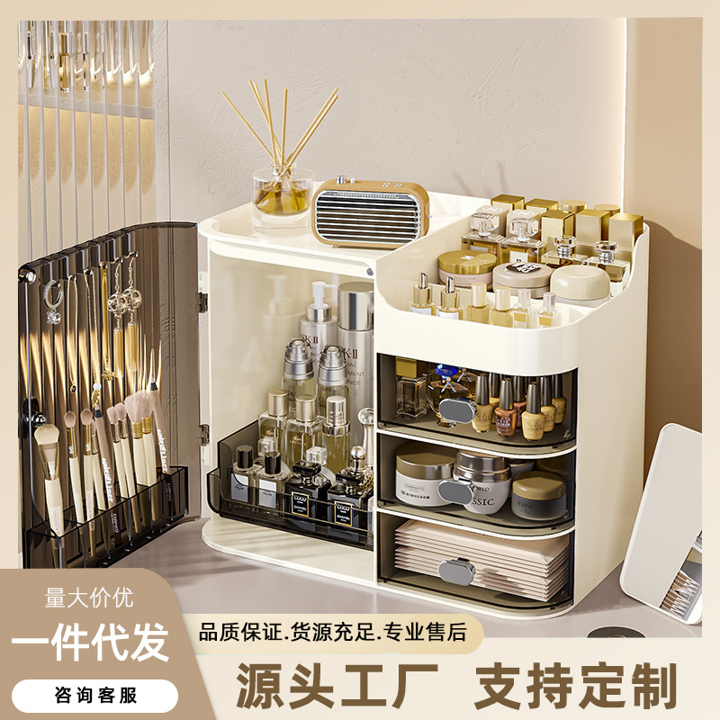 Cosmetic Storage Box Desktop Advanced Sense New Large Capacity Dustproof Lipstick Dressing Table Internet Celebrity Finishing Storage Rack