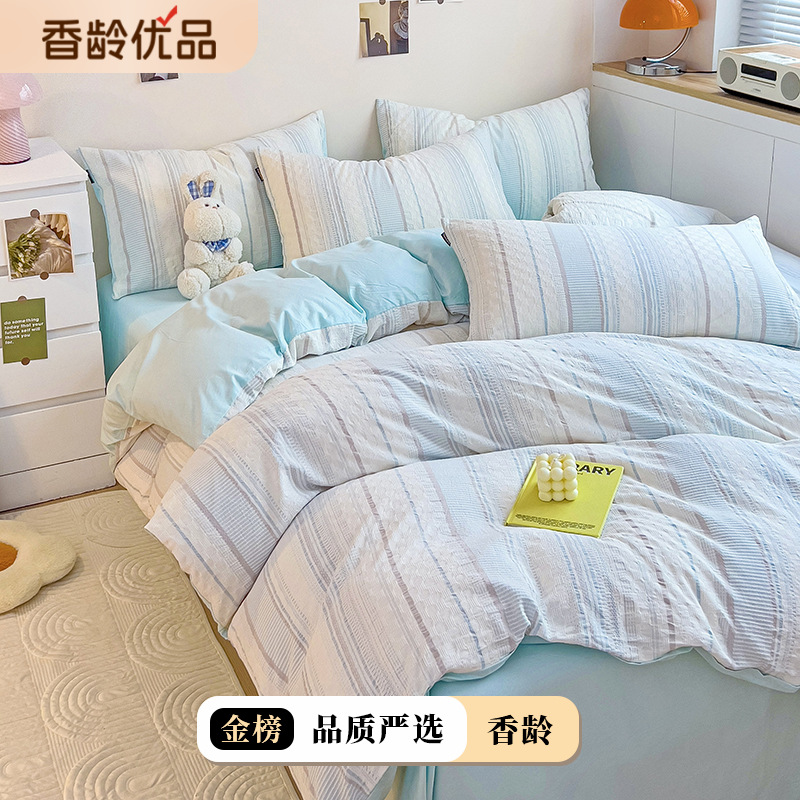Cotton maternal and child class A 60s four-piece jacquard cotton three-piece cream style quilt cover bed sheet dormitory bedding