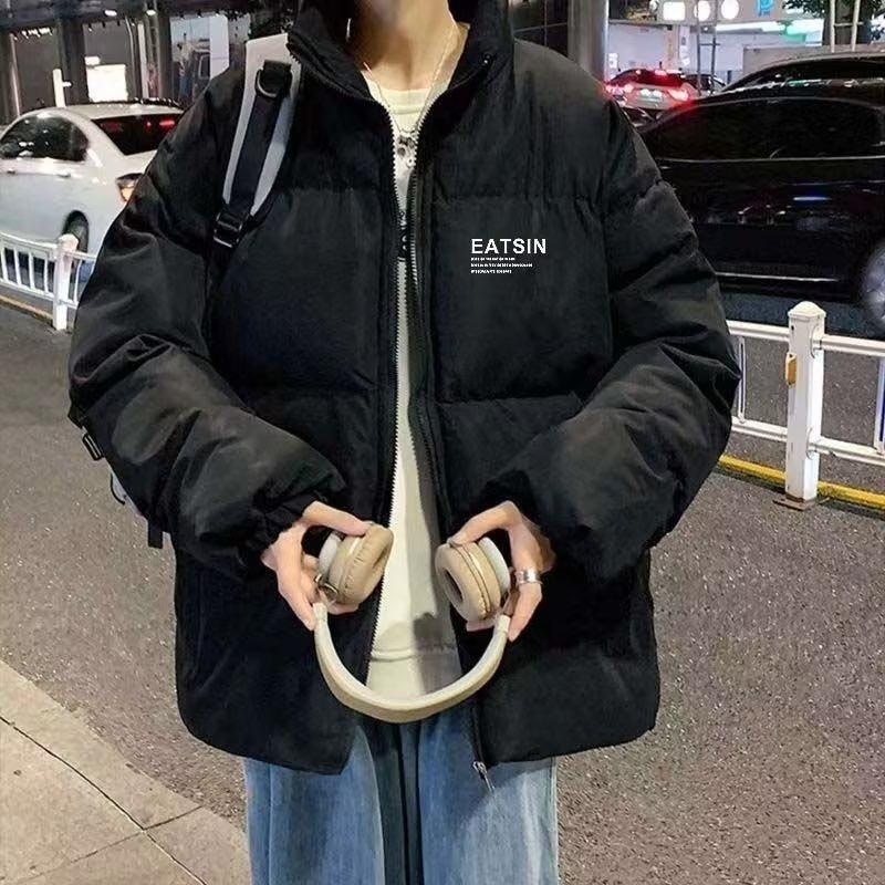 Cotton-Padded Jacket for Men, Autumn and Winter New Loose Warm Cotton Coat, Fashionable Versatile Stand Collar Couple Style Cotton-Padded Jacket