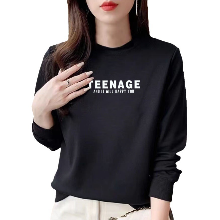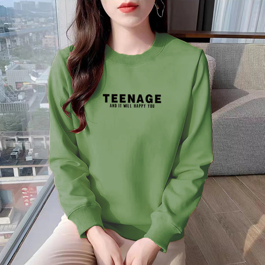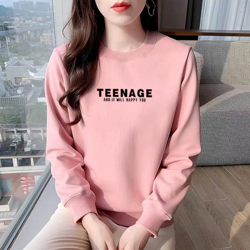 Cotton sweater women's round neck fashion slimming casual loose printed letter long sleeve top pullover shoulder Spring