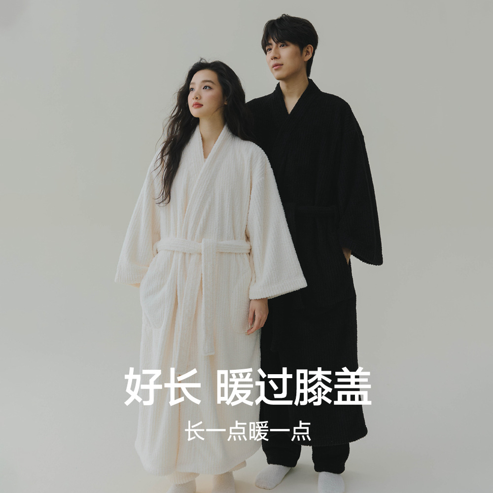 Couple Pajamas Women's Autumn and Winter Coral Velvet Thickened Warm Long Nightgown Bathrobe