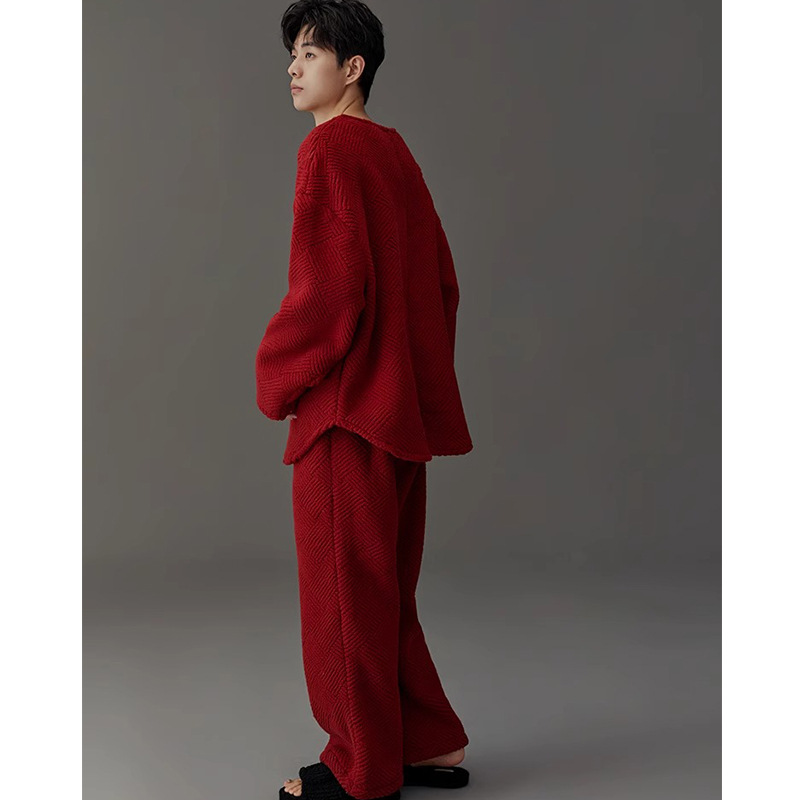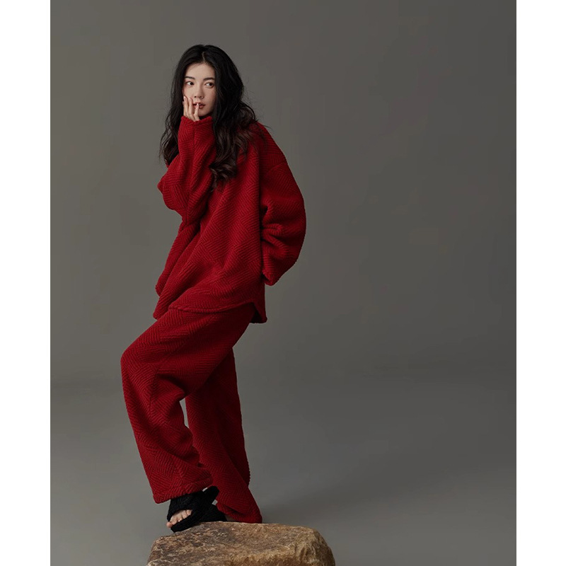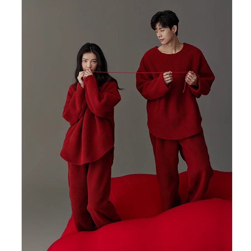 Couple's red pajamas autumn and winter coral fleece thickened suit wedding festive men's and women's home wear thickened winter
