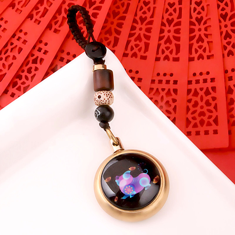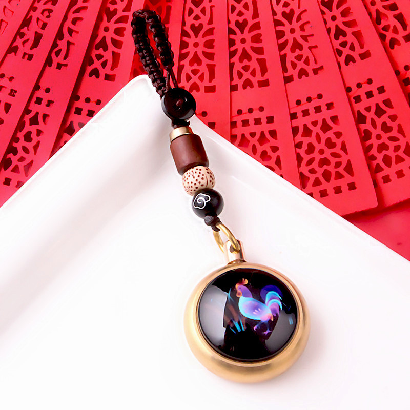 Creative Zodiac Year Brass Luminous Glass Twelve Zodiac Pendant Car Rotating Keychain Pendant Good Luck