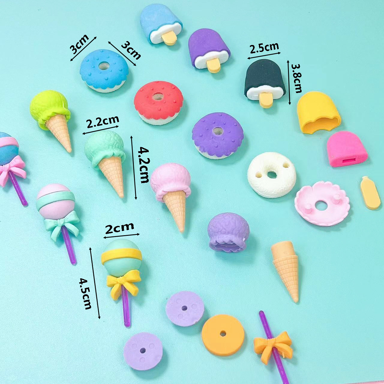 Creative cartoon shape rubber children's ice cream eraser student prizes cute dessert hamburger rubber wholesale