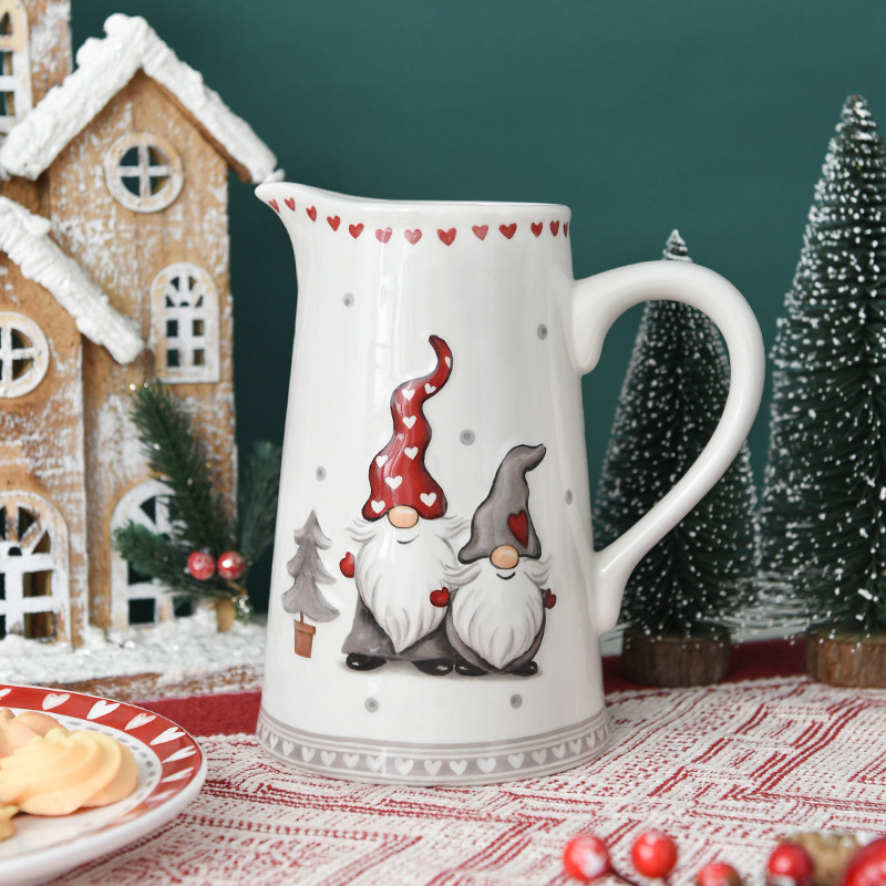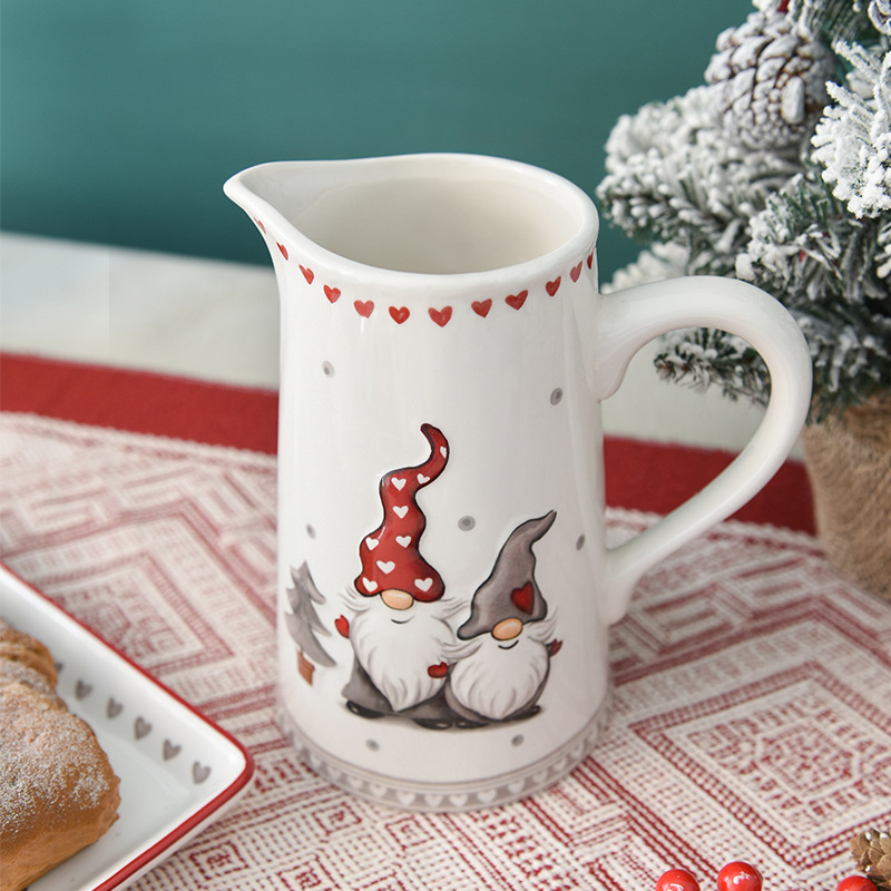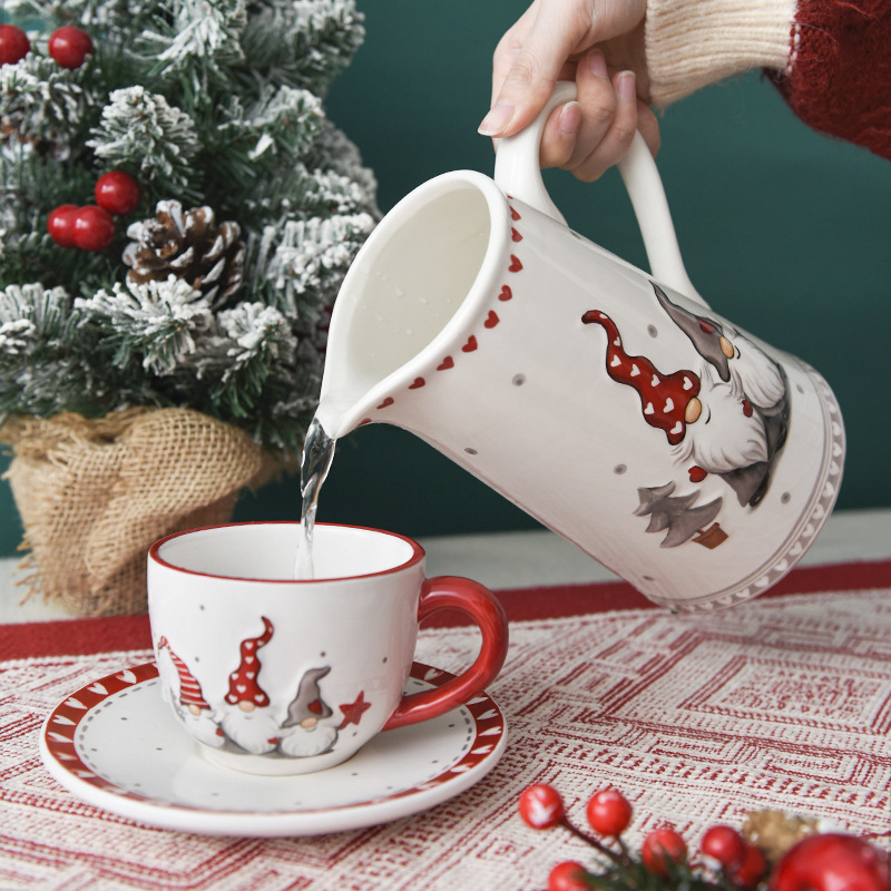 Creative Christmas Cold Water Kettle suit Nordic Large Capacity Ceramic Cold Water Kettle without Cover with Handle Relief Household Drinking Utensils