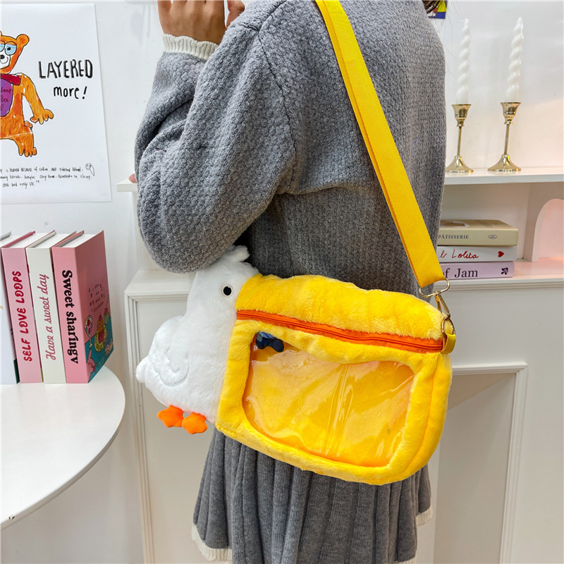 2025 New Style Two-Dimensional Cartoon Pelican Plush Bag Jk Style Girl Student Shoulder Crossbody Bag Soft Girl Pain Bag