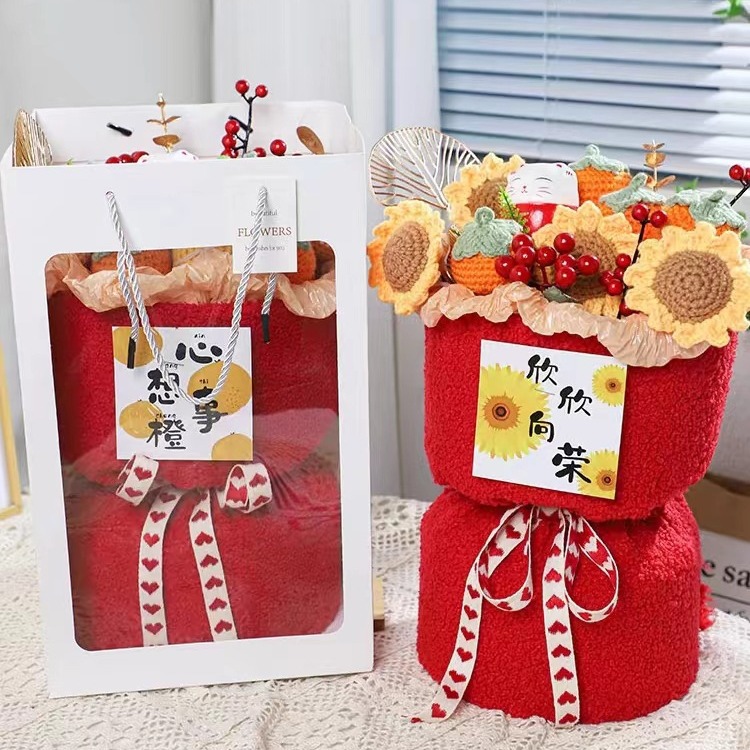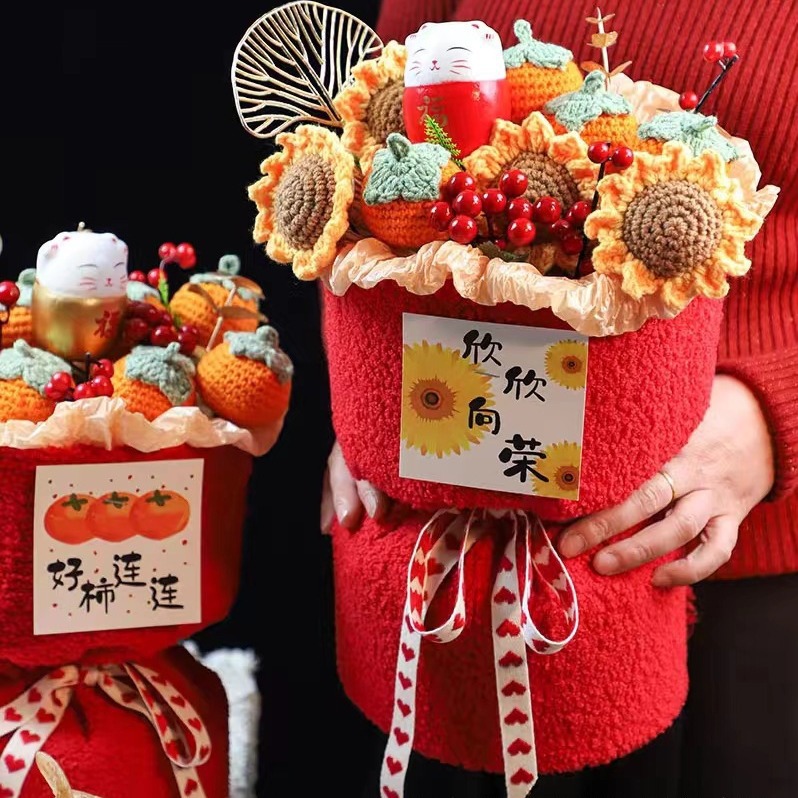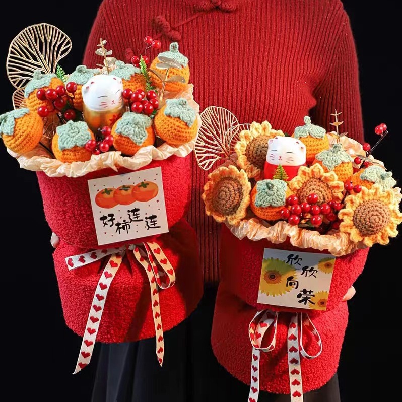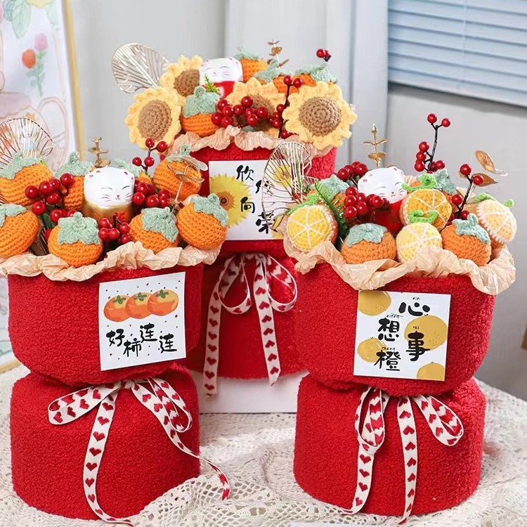 Creative wedding gift knitted fruit Persimmon Persimmon Ruyi Mother's Day bouquet wool flower housewarming gift safe joy