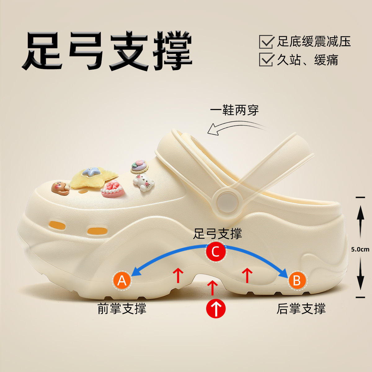 Croc Shoes Women's Puff Cloud Arch Support Non-Tiring Feet Eva Thick-Soled Heightening Slippers Women's High-Heeled Sandals