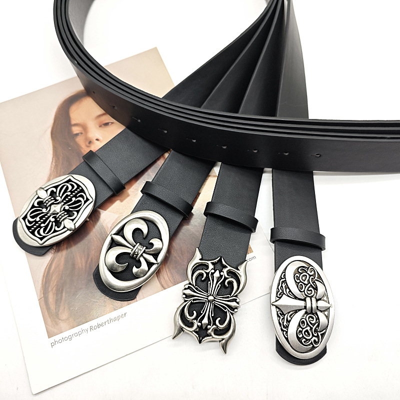 Croch Classic Water Ripple Vine Cross Western Denim Trendy Men's Pants with Vintage Carved Button Head Hollow Out