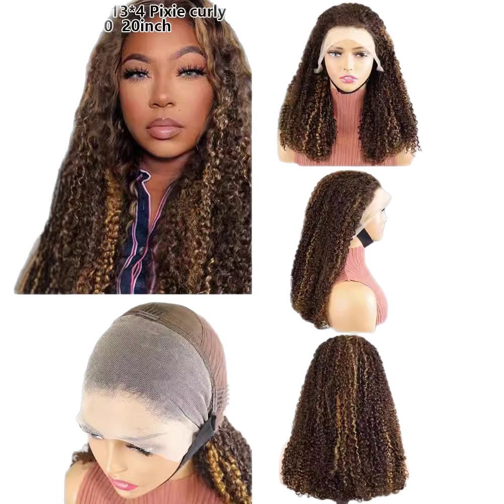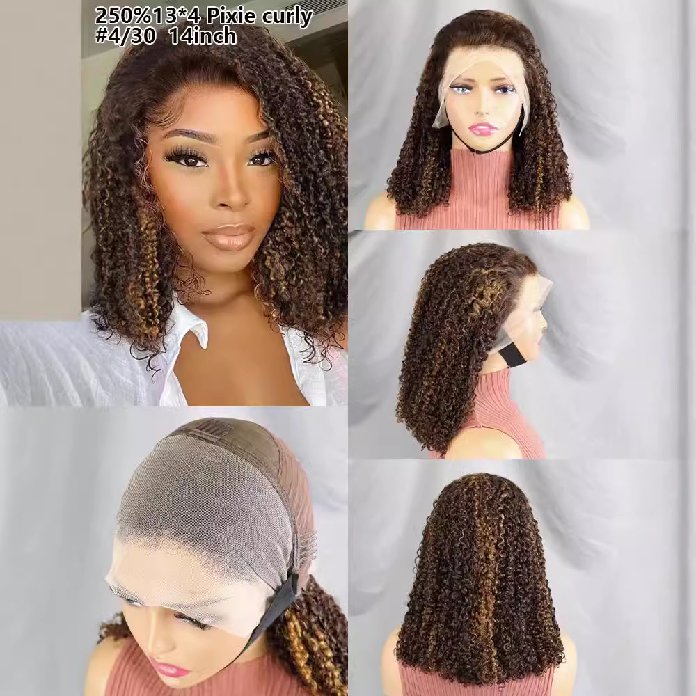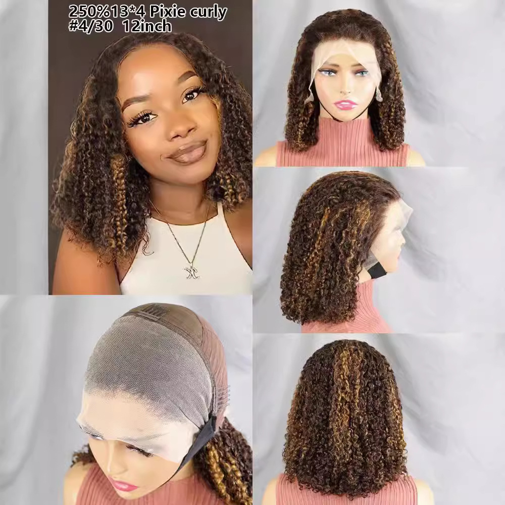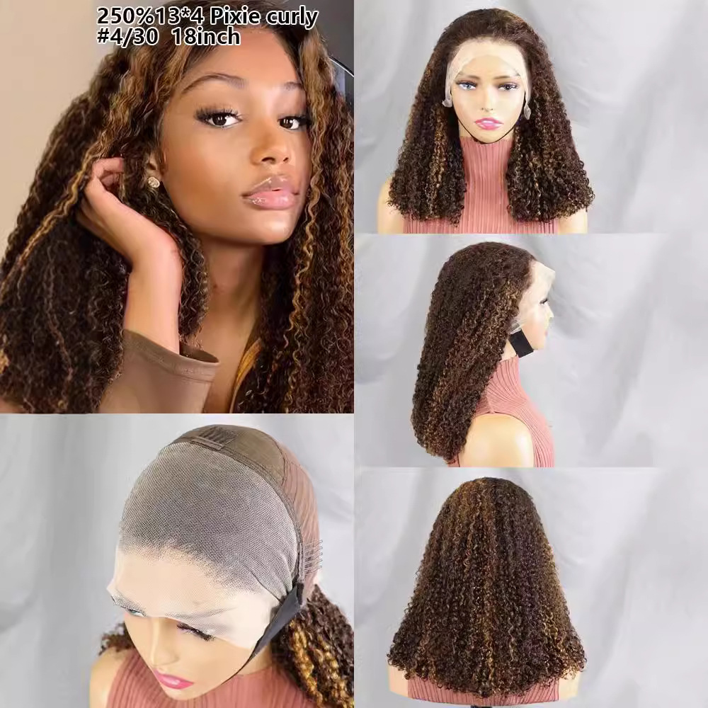 Cross-border 250% density 13x 4 frontal lace pixie curly wig100% human hair