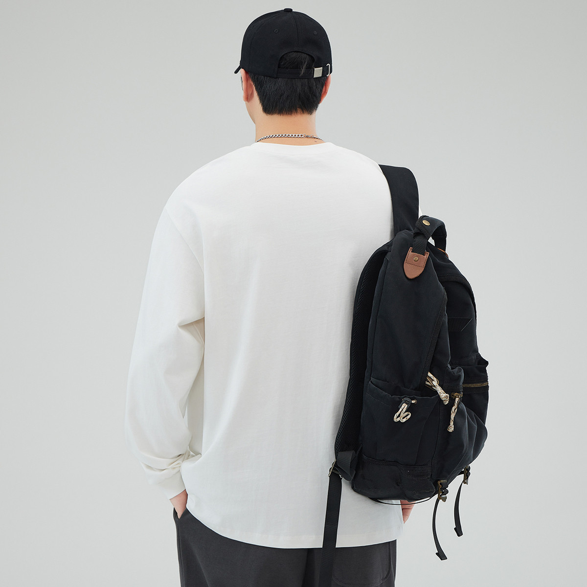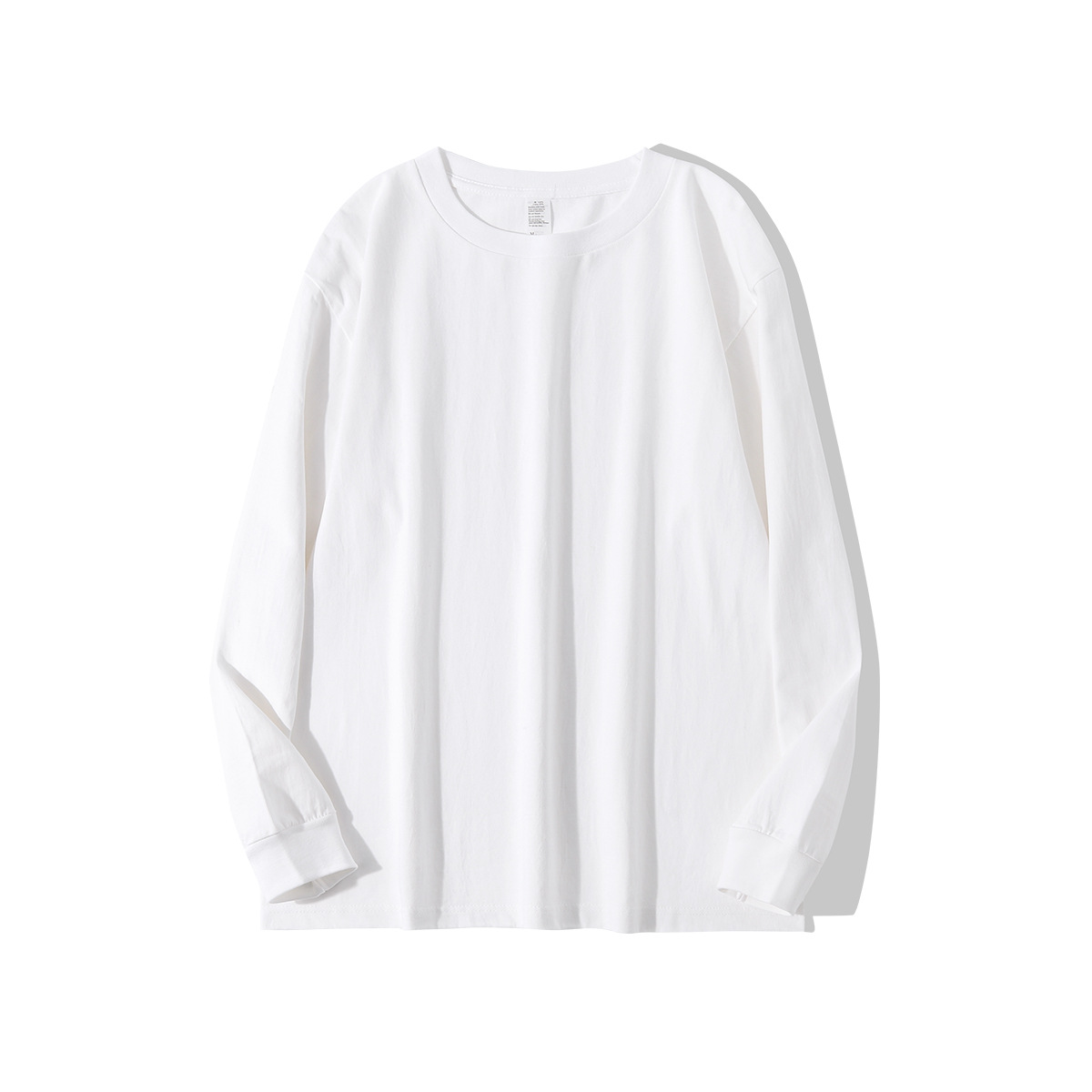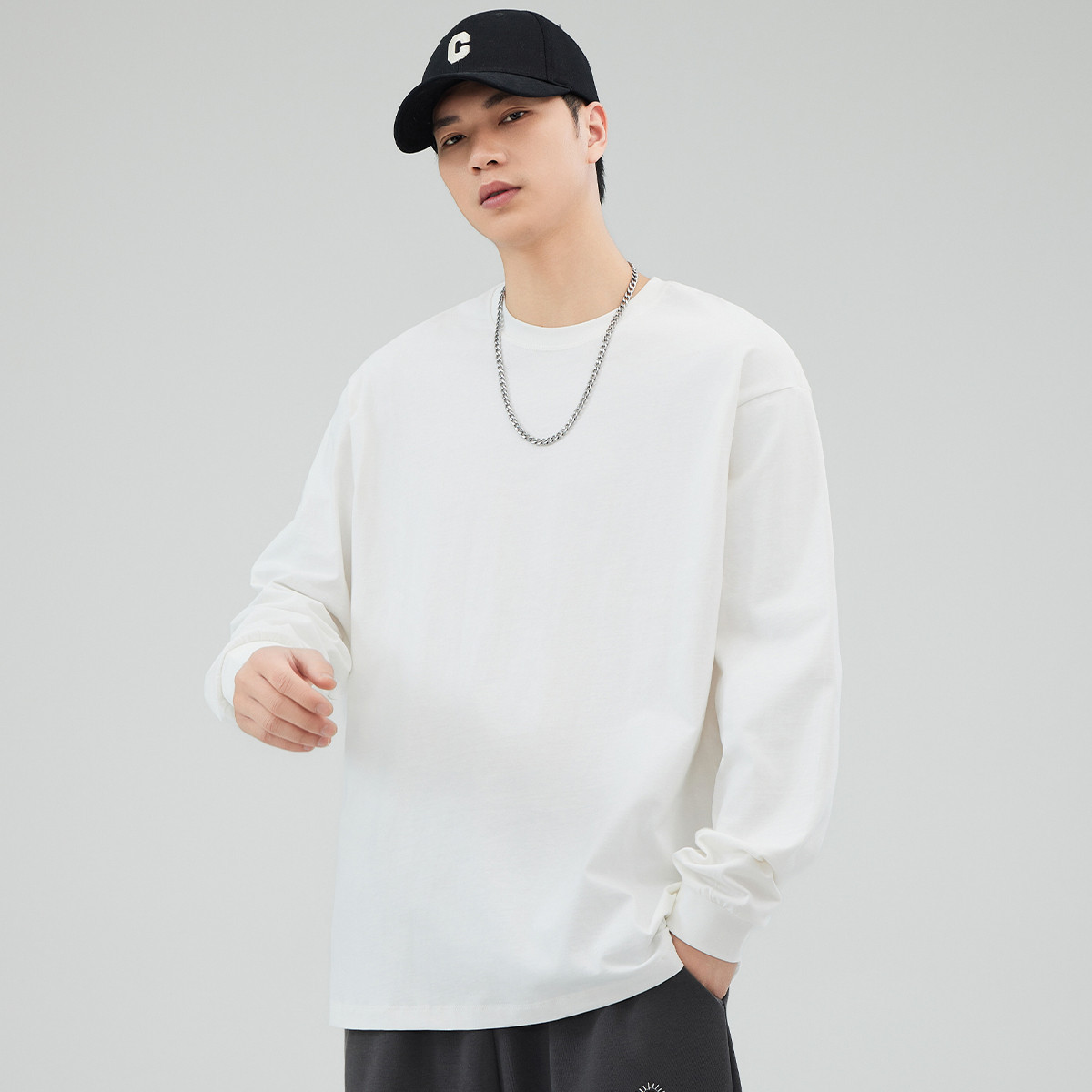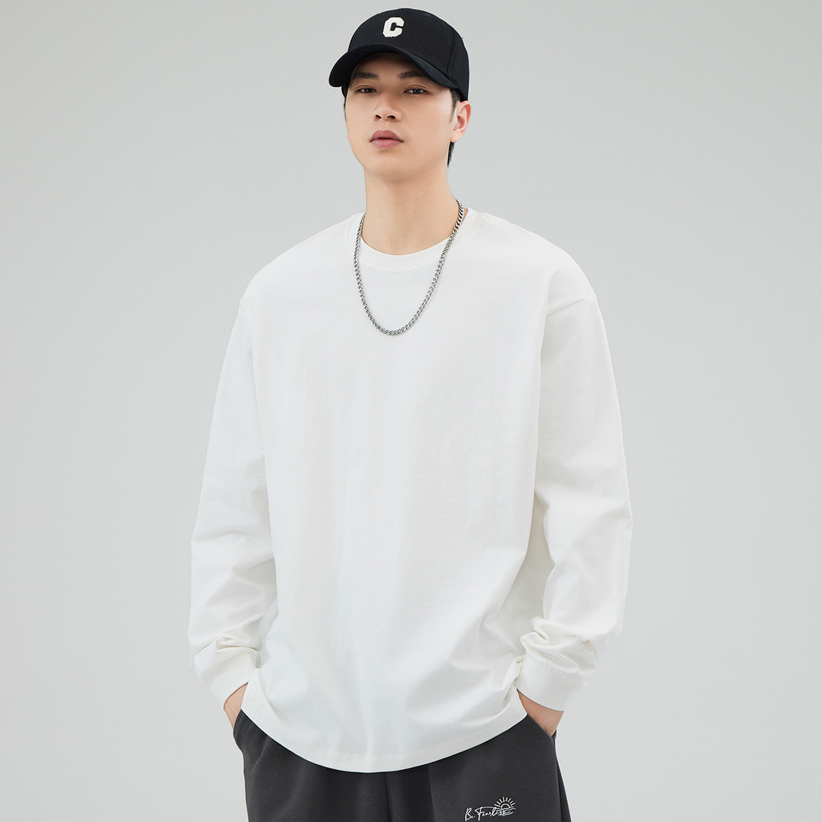 Cross-border 270G heavy cotton long sleeve men's T-shirt American solid color basic wear sweater base shirt tide