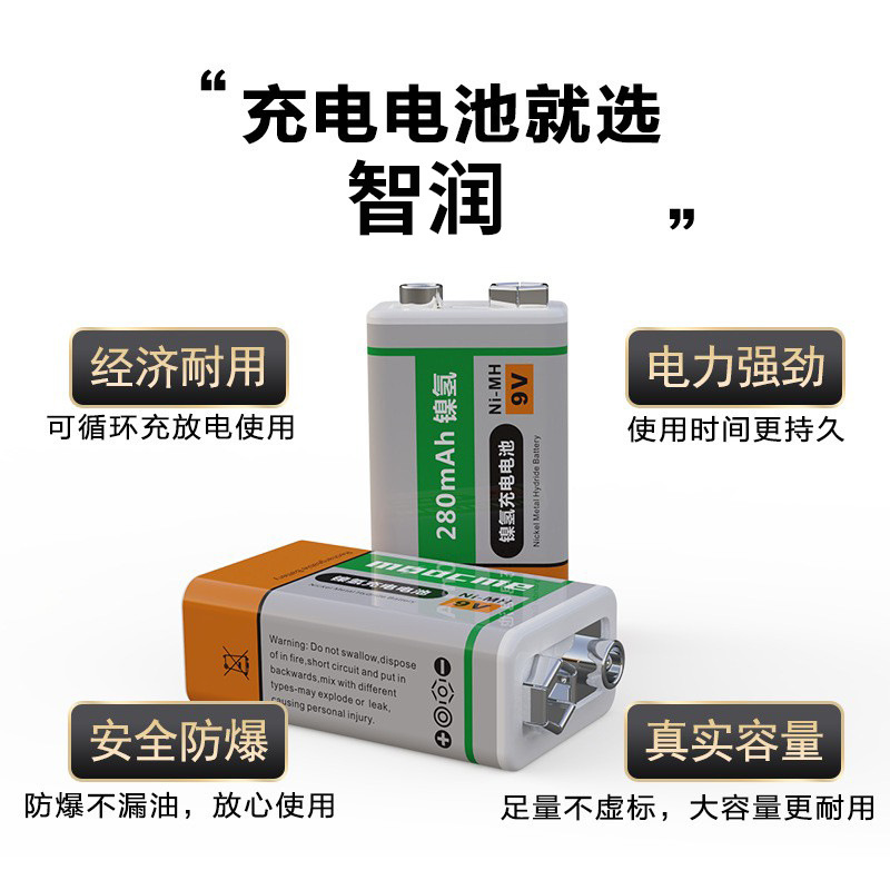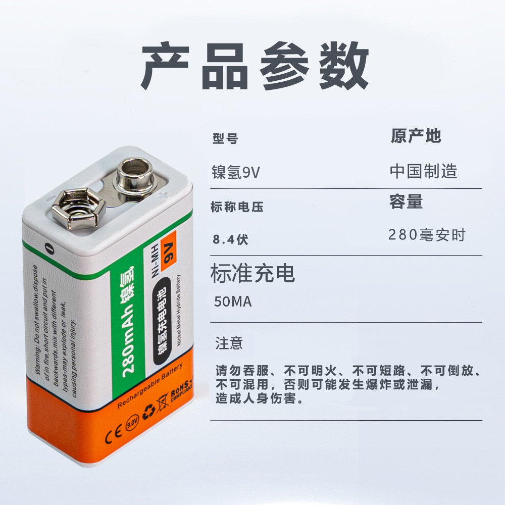 Cross-Border 9V Nickel-Metal Hydride Battery Charging Set 6F22 Universal Meter Remote Control 2 Slots with 2 280Mah Fast Charging Batteries