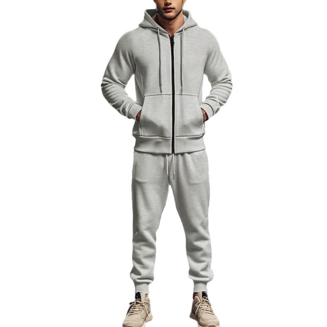 Cross-border Amazon Fall/Winter Men's Solid Color fleece-lined Warm Zipper Long Sleeve Hooded Casual Sports suit