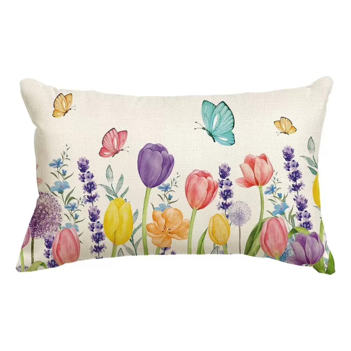 Cross-border Amazon New Spring Flower Pillow Case Linen Printed Flower Sofa Cushion Cover Home Pillow Case