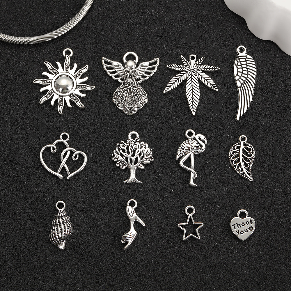 Cross-Border Ancient Silver Sun Angel Alloy Pendant Niche Stylish Retro Jewelry Accessories DIY Necklace Earrings Material