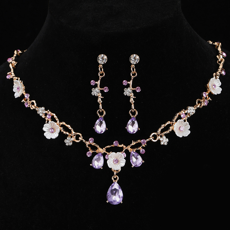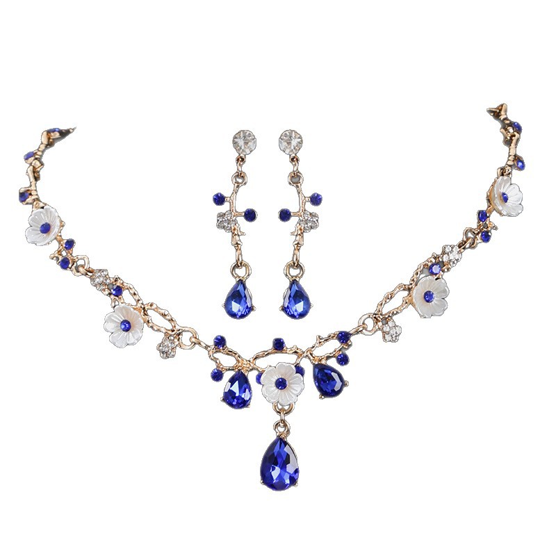 Cross-Border Bridal Alloy Flower Necklace Earrings Jewelry Set Wedding Dress Crystal Rhinestone Accessories Jewelry Light Luxury