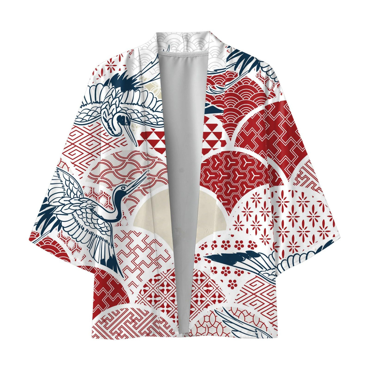 Cross-Border Creative Illustration Animal Crane Element Cardigan Kimono Feather Woven Cloak Loose Harajuku Trendyy Men's Jacket