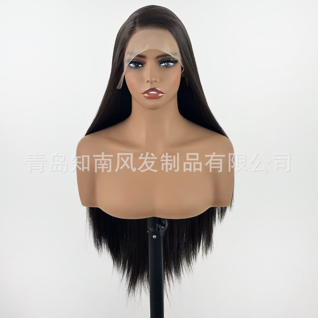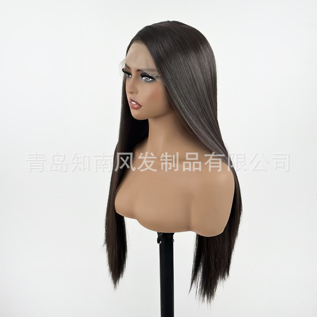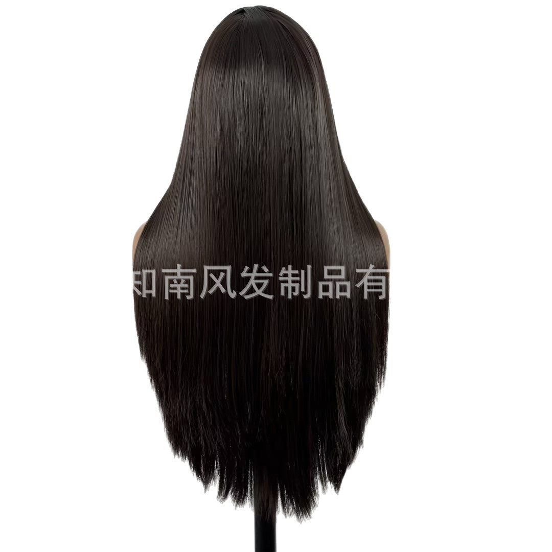 Cross-Border Dark Brown Wig Matte High-Temperature Fiber Lace Front Hand-Woven 13*4 Wigs Full Hairpiece Foreign Trade