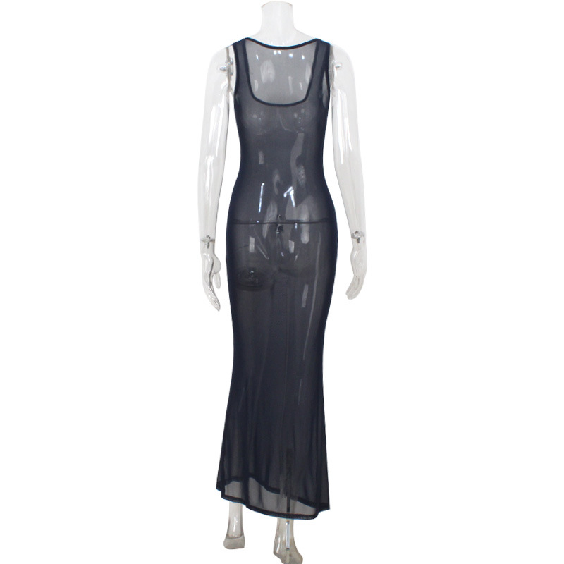 Cross-border European and American style summer new ladies sexy perspective mesh beach holiday dress evening dress women wholesale