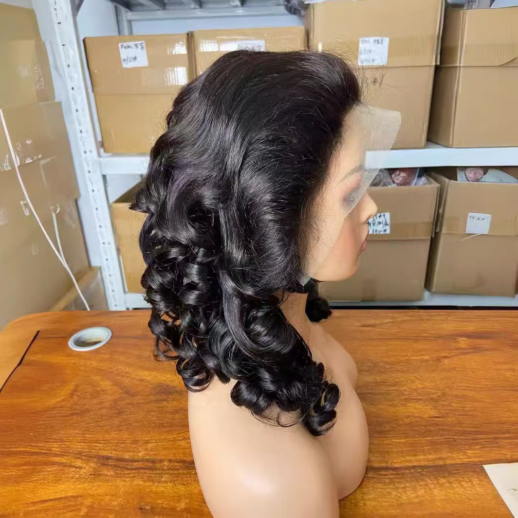 Cross-Border European and American Wig Human Hair Wig 13*4 Front Lace Bell Curl Women's Curly Hair Wig
