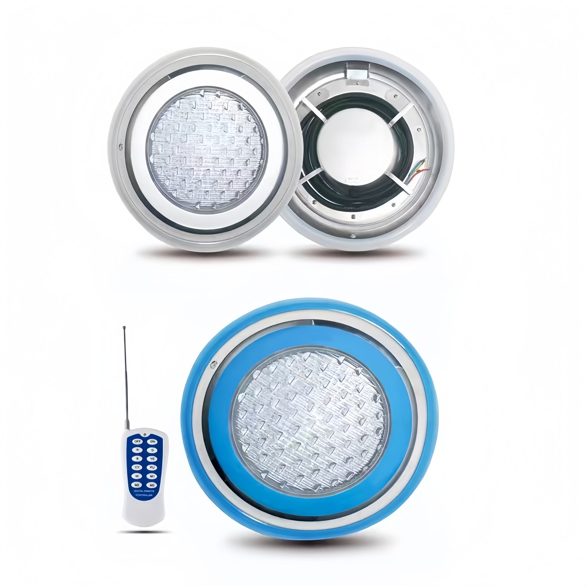 Cross-Border Exclusive Supply of Led Swimming Pool Lights, Wall-Mounted Stainless Steel Underwater Lights, Surface-Mounted Round Rgb Seven-Color Wireless Swimming Pool Lights