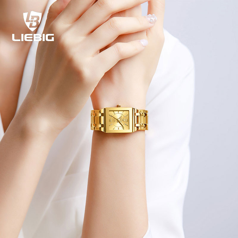 Cross-border Explosive LIEBIG Classic Women's Small Square Watch Light Luxury Diamond-encrusted Steel Band Waterproof Watch Elegant Quartz Men's Watch