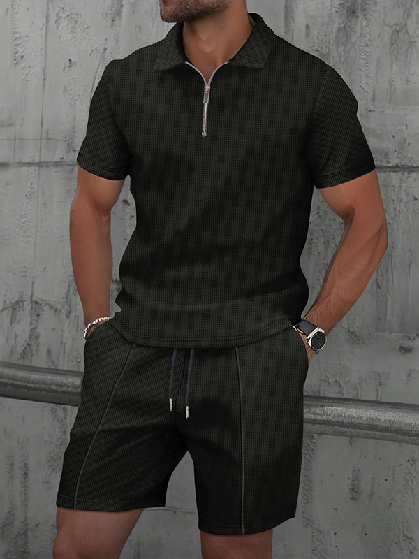 Cross-Border Export Specializes in Amazon Aliexpress New European and American Men's Polo Casual Loose Short-Sleeved Shorts Suit