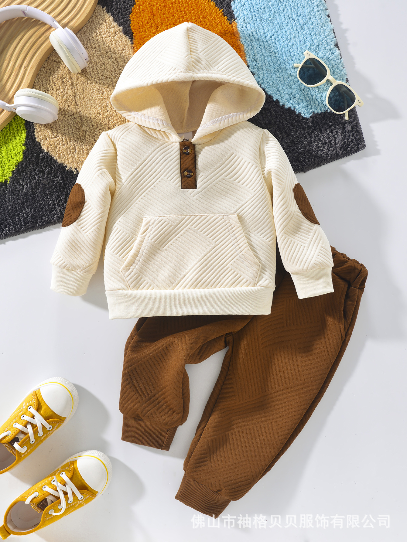 Cross-Border Export Toddler Baby Boy Clothing Long-Sleeved Hooded Sweatshirt Sweatshirt Pants Autumn and Winter Sportswear 2-Piece Set