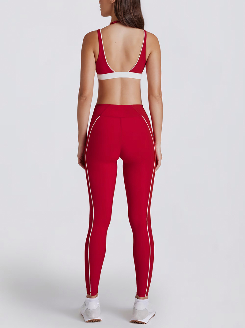 Cross-Border Fake Two-Piece Contrasting White Striped Running Fitness Shorts V Neck Halter Sports Bra Bra Yoga Suit