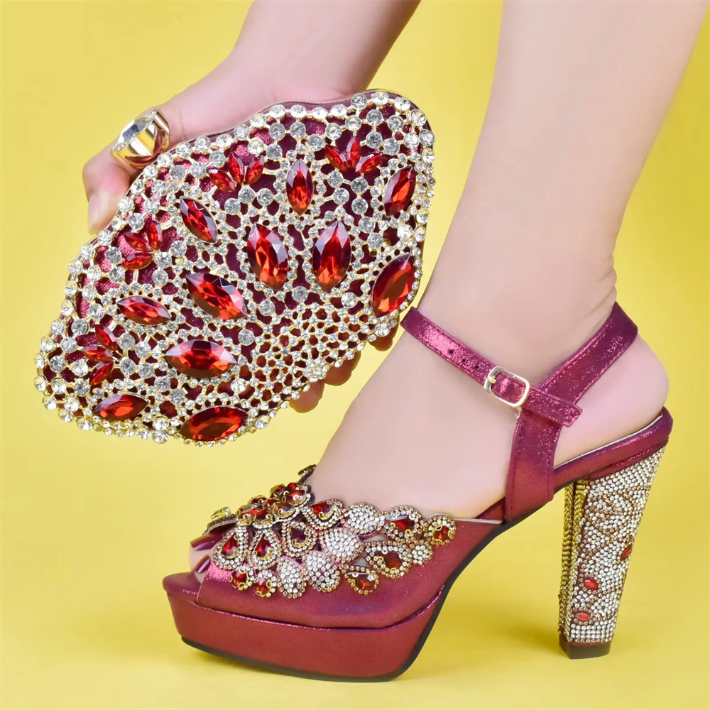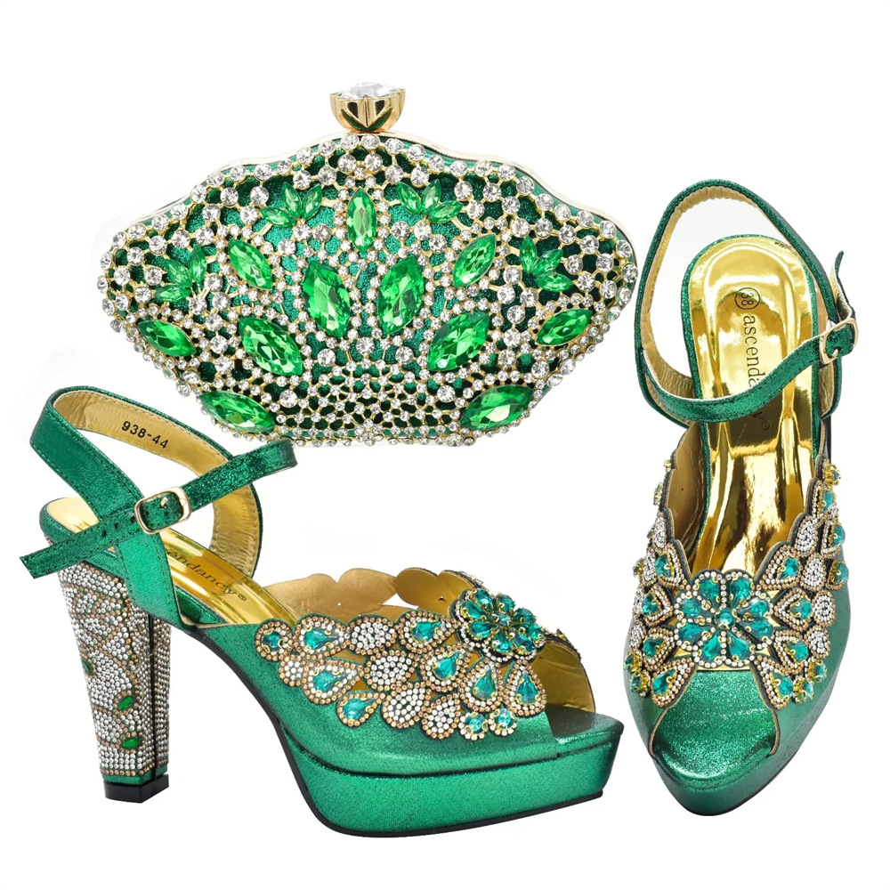 Cross-Border Foreign Trade In-Stock European and American Rhinestone 2024 Elegant Fashion High-Heeled Sandals with Matching Bag Set European and American Style