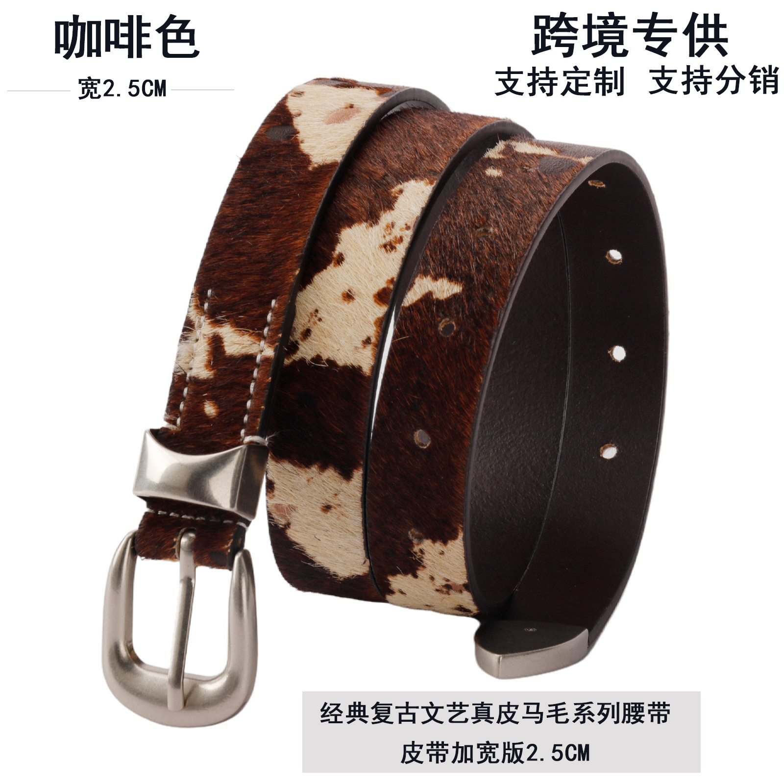 Cross-border Genuine Leather Horse Hair Top Layer Cowhide Women's Belt Retro Artistic Casual All-match Fashionable High-end Sense Belt for Men