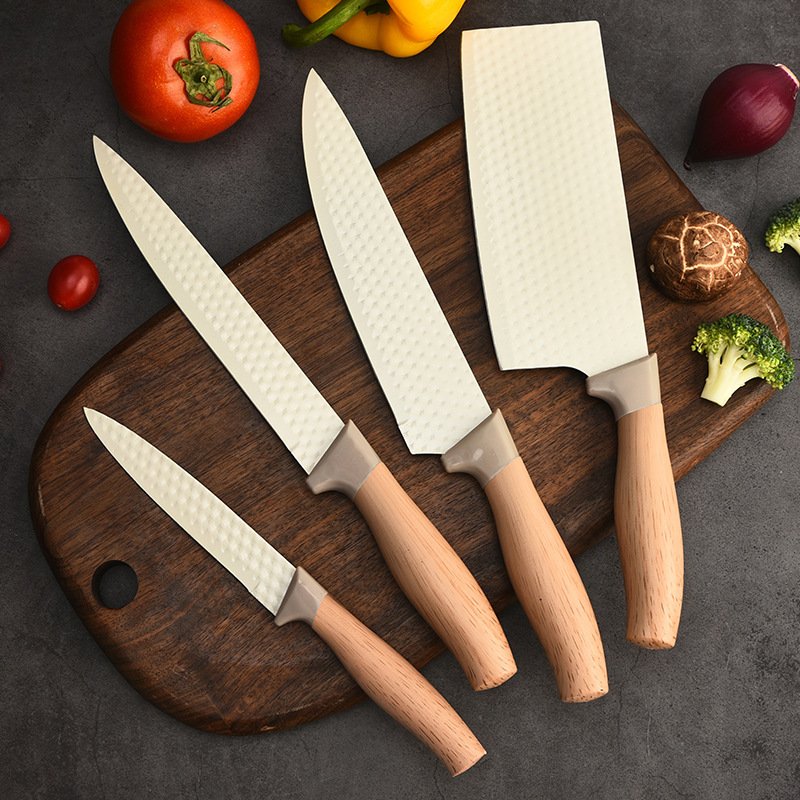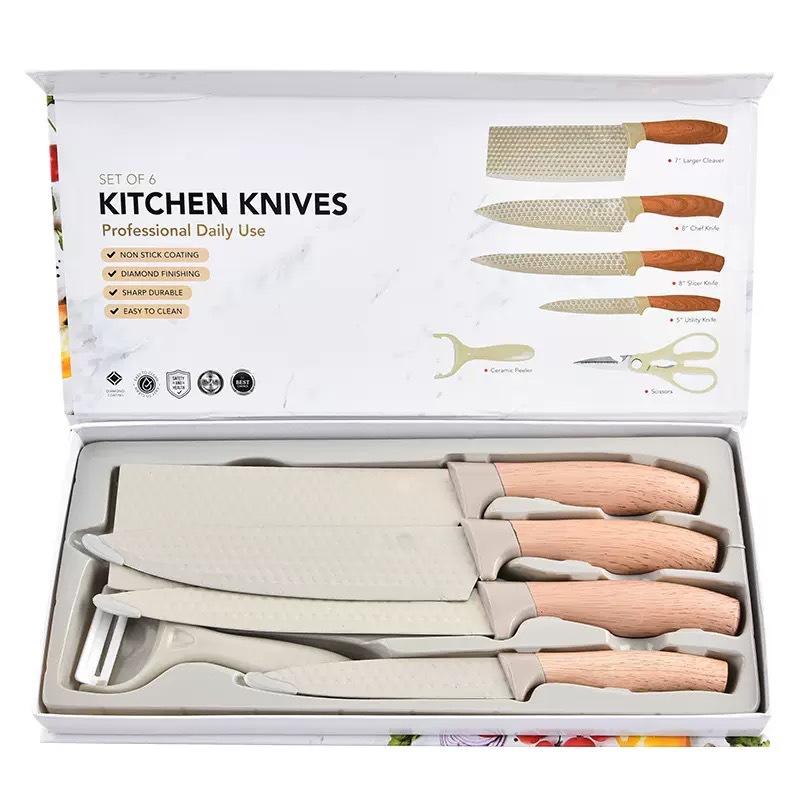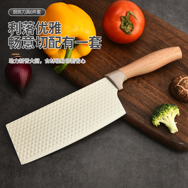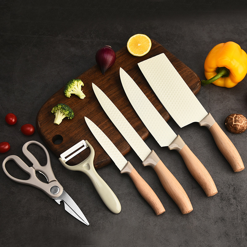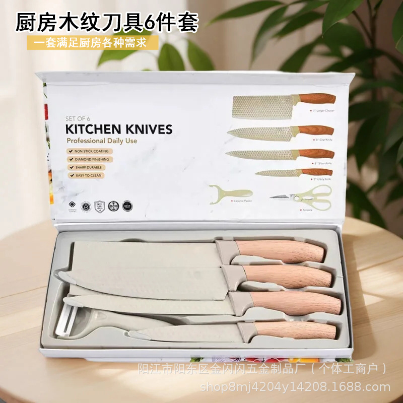 Cross-border Hot Original Color Fat Handle Six-piece Kitchen Household Gift Knife Set Stainless Steel Knife suit Wholesale