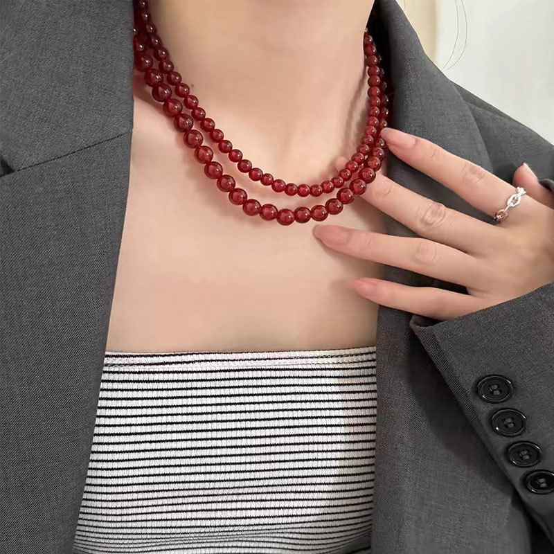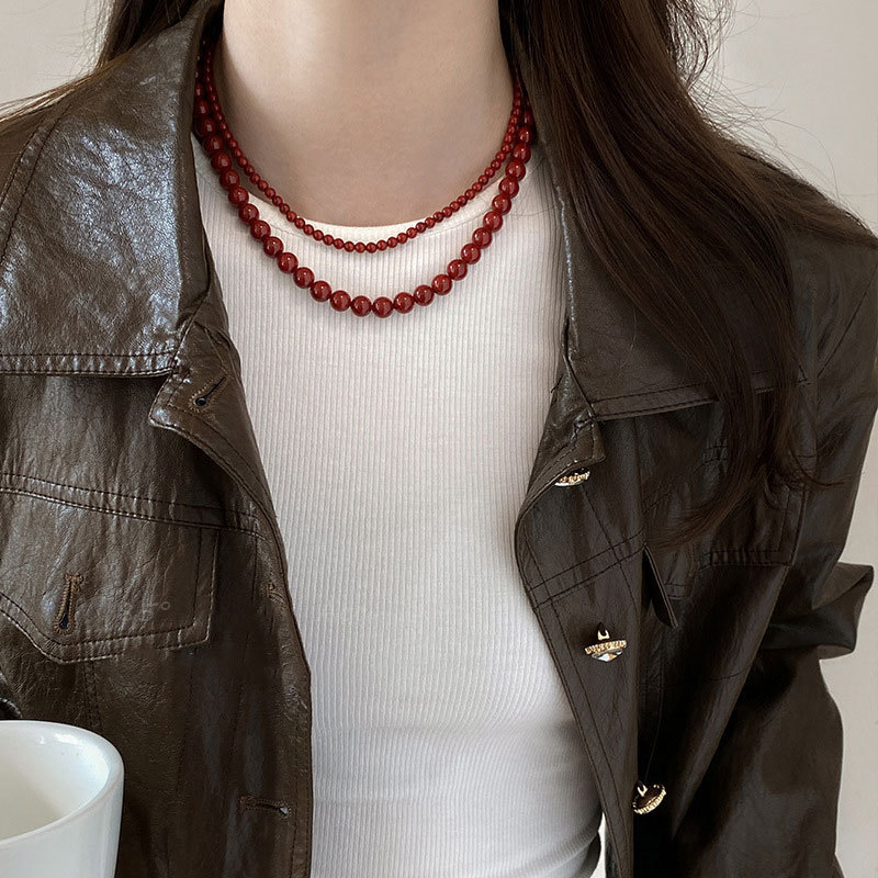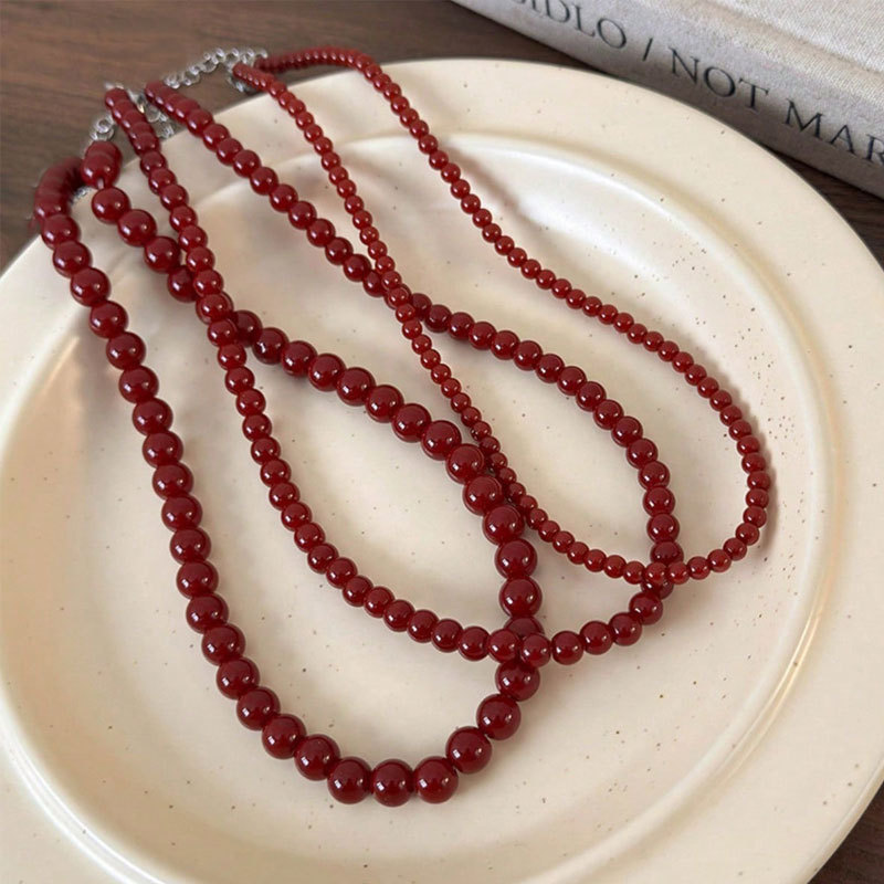 Cross-border hot sale Ankora red glass pearl necklace women temperament high sense clavicle chain necklace jewelry wholesale