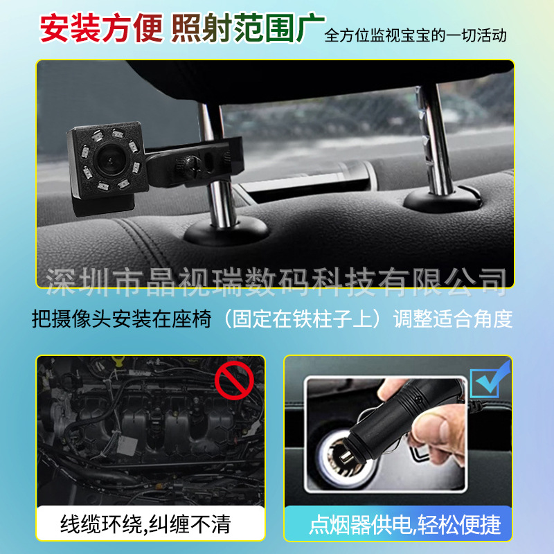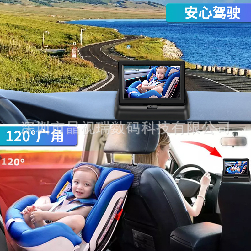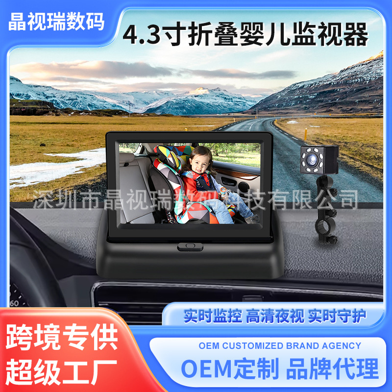 Cross-Border Hot-Selling New Product 4.3-Inch Foldable In-Car Baby Monitoring Monitor 12V Universal Car Baby Monitor