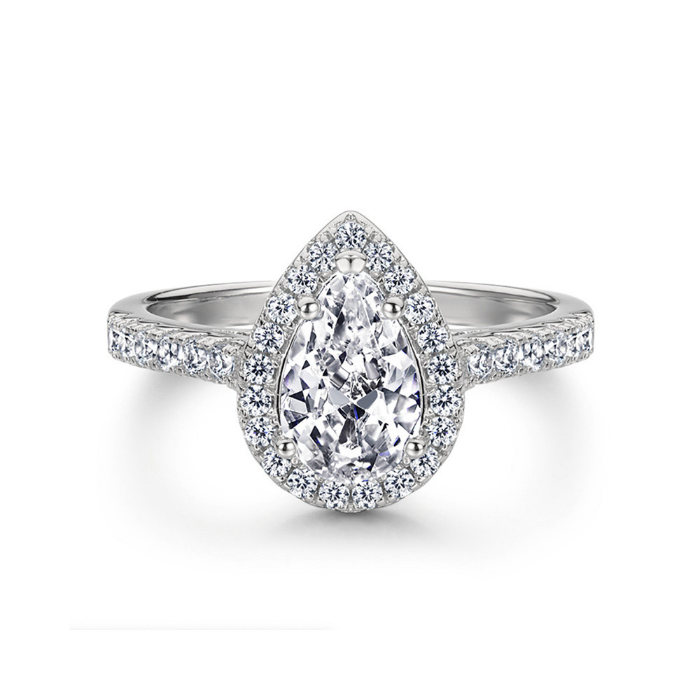 Cross-Border Hot-Selling Engagement Diamond Ring, Luxury Ring for Proposal, Water Drop Element, Heart Design, Micro-Paved Zircon Women's Wedding Ring