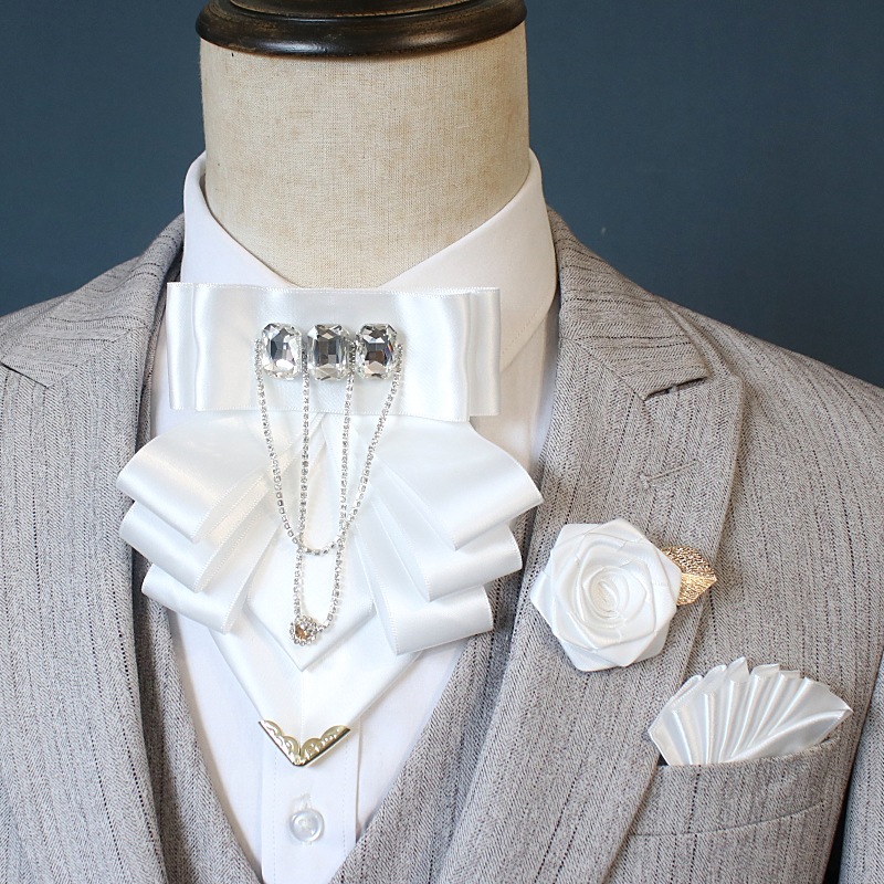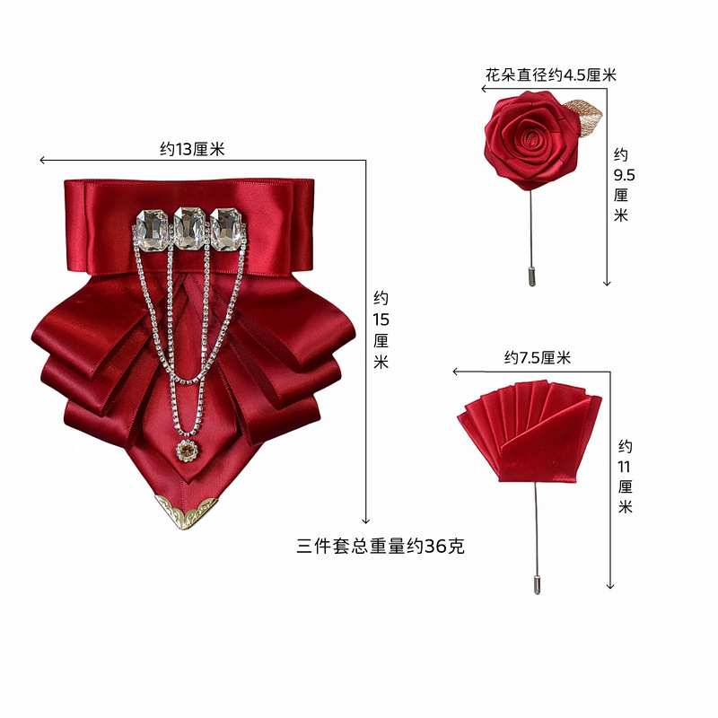 Cross-Border Hot-Selling Exaggerated Rhinestone Collar Flower Corsage Pocket Scarf Suit European and American Gentleman Formal Shirt Bow Tie Three-Piece Set