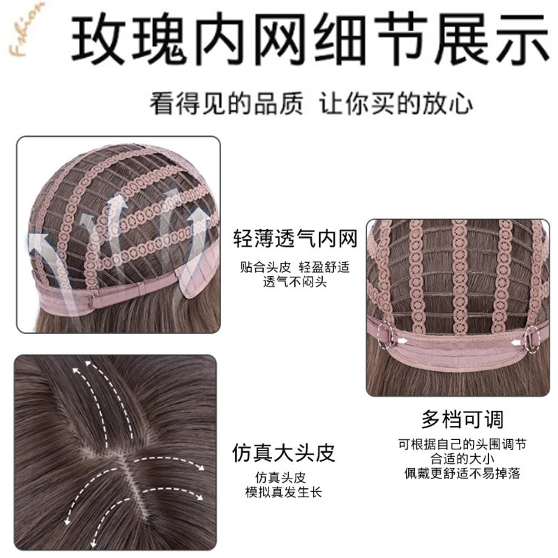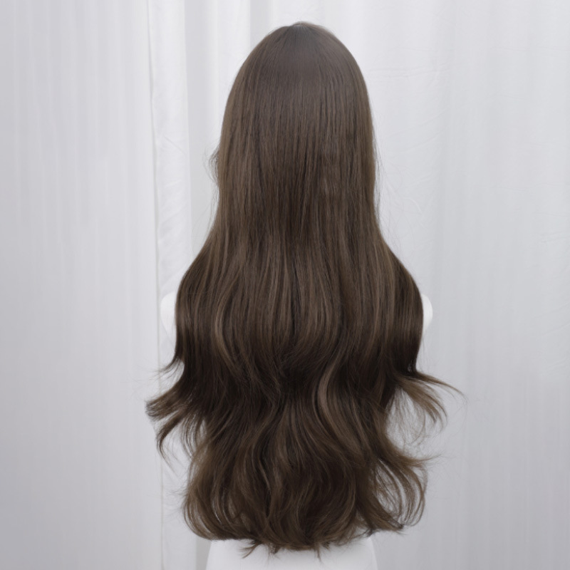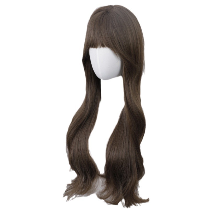 Cross-Border Hot-Selling Wig for Women with Long Hair, Air Bangs, Curly Hair, Daily Use, Hazelnut Gray-Brown, Realistic Synthetic Hair Full Wig Set