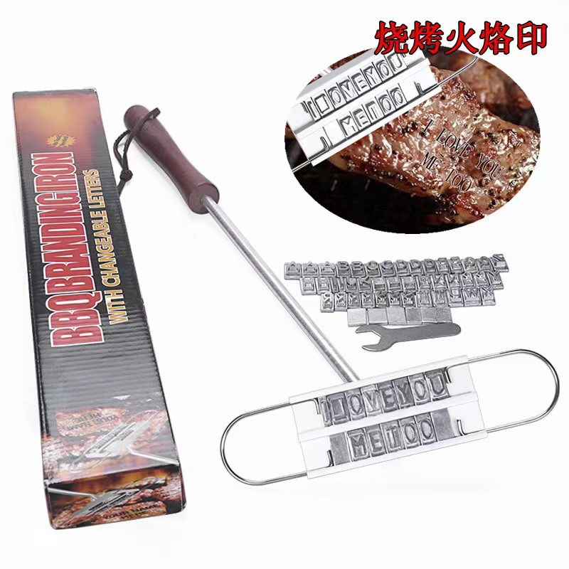 Cross-Border Spot European and American Style Barbecue Fire Branding Mold Three-Piece Set Barbecue Branding Letter Branding English Letters Bbq