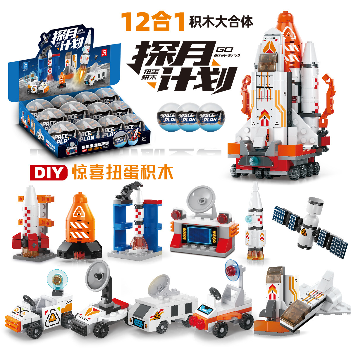 Cross-Border K61A Aerospace Series Trendy Character Rocket Ship Astronaut Assembled Building Blocks Gashapon Small Gift Toys