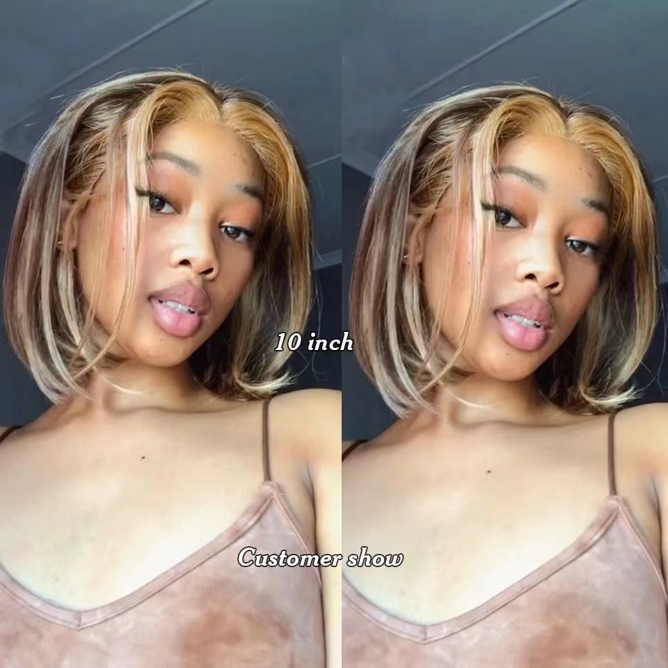 Cross-Border Lace Front Short Straight Wig Fashion Gradient Piano Color Bob Breathable Synthetic Fiber Daily Wig