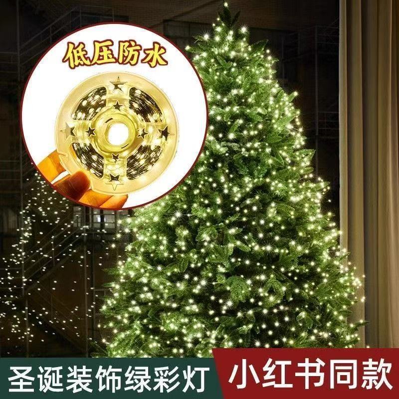 Cross-border LED remote control Christmas tree rattan light string green wire copper wire light all over the sky star straight line outdoor courtyard decorative light