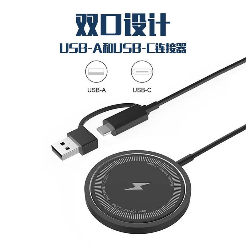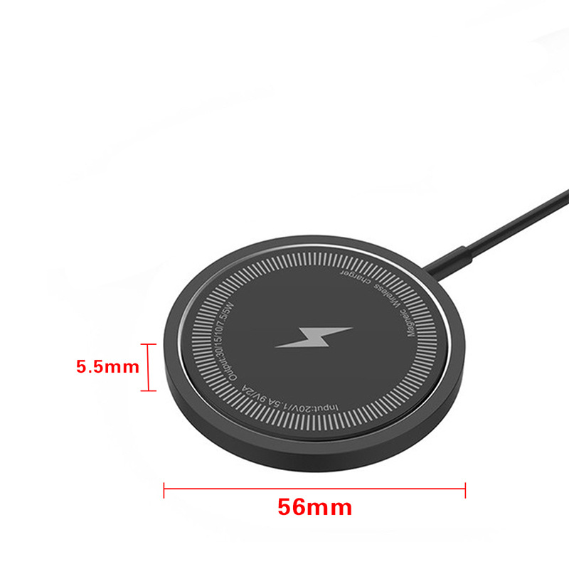 Cross-Border Magnetic 15W Wireless Charger Round Ultra-Thin Alloy with Typec Cable Magsafe Magnetic Fast Charging