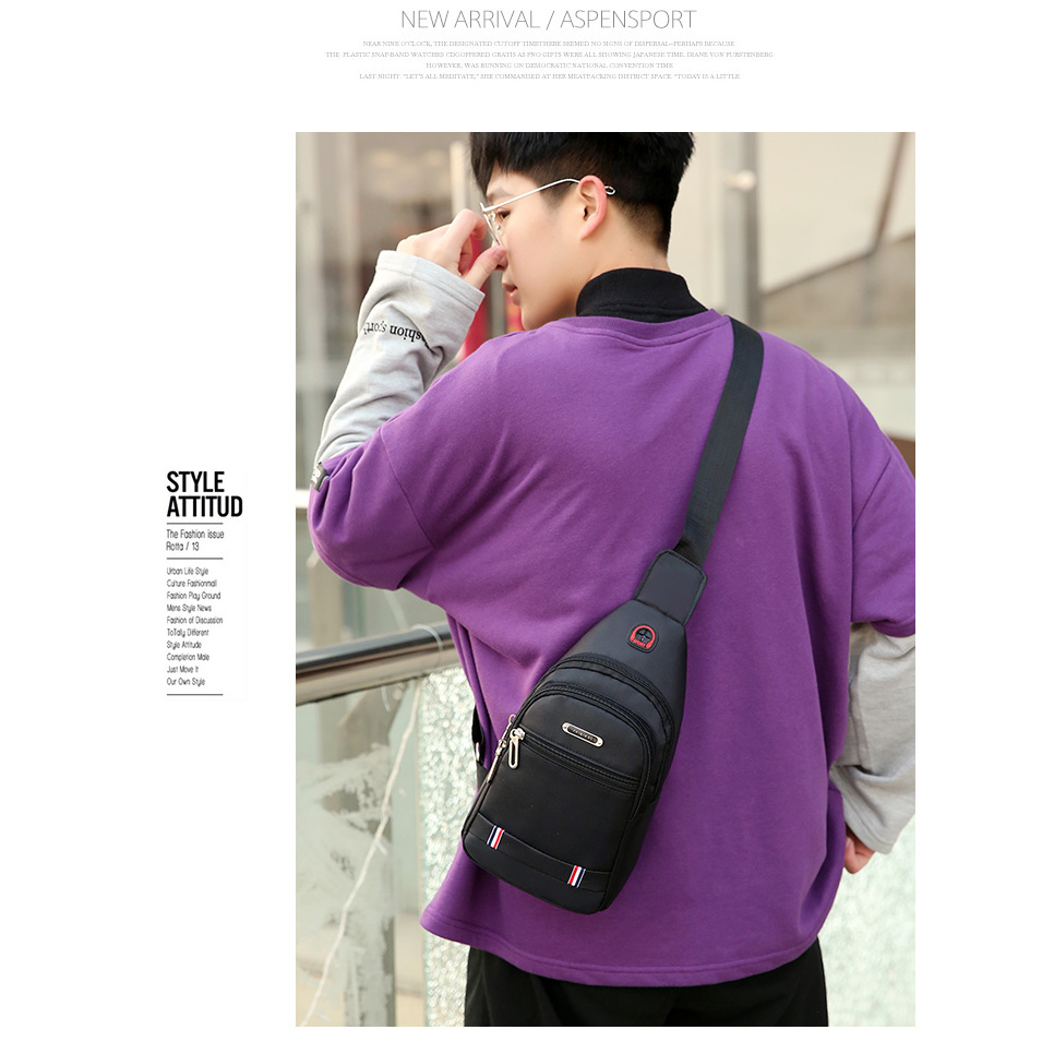 Cross-Border Men's Crossbody Bag, Simple and Versatile, Business Travel, Large Capacity, Trendy Waterproof and Wear-Resistant Bag, Men's Chest Bag