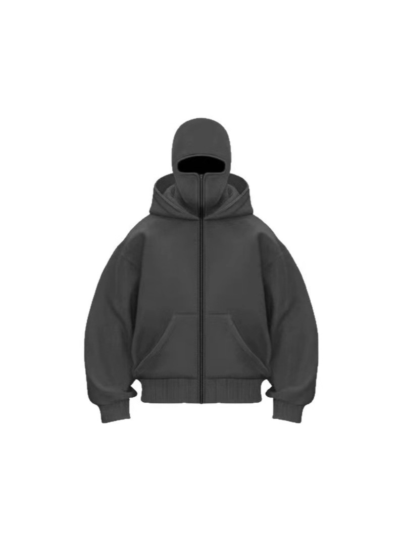 Cross-Border Men's Zipper Shirt Fleece Cardigan Masked Double Hood Design Hoodie Sweatshirt European Size Loose Sports Jacket